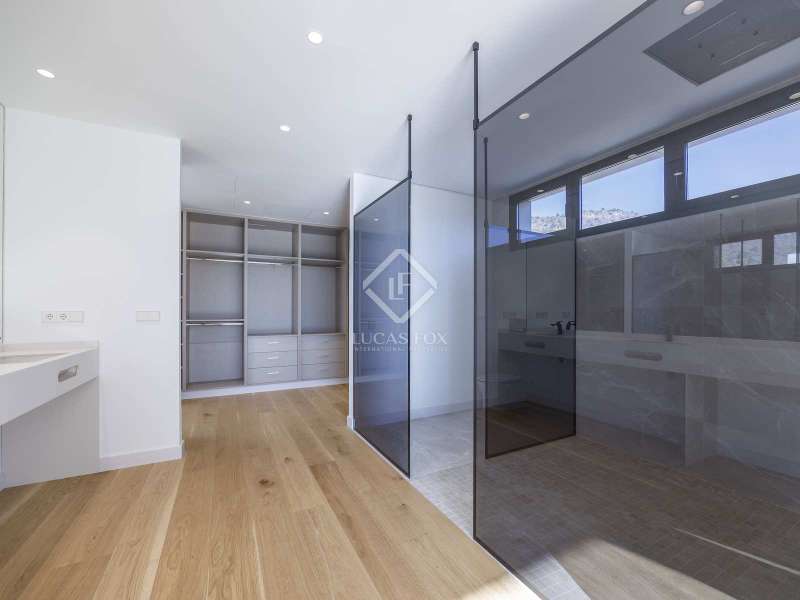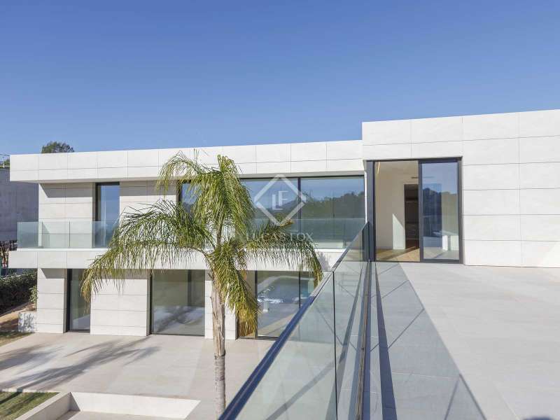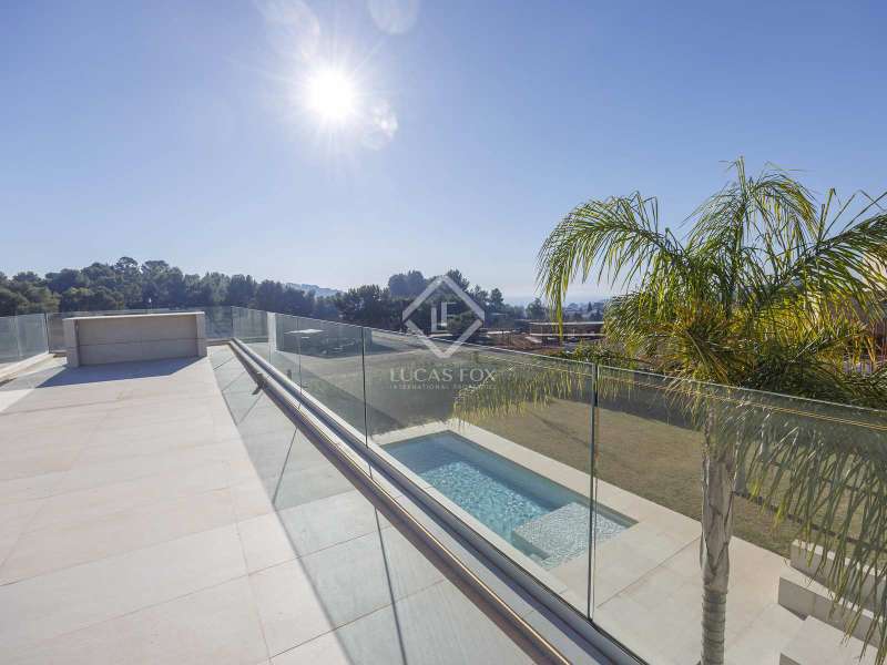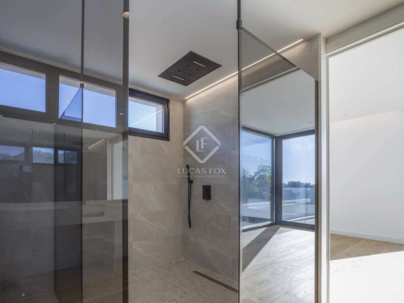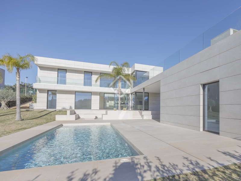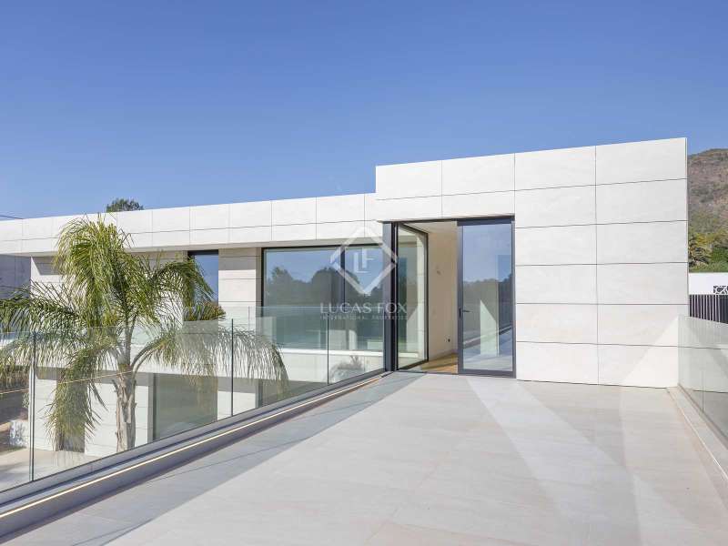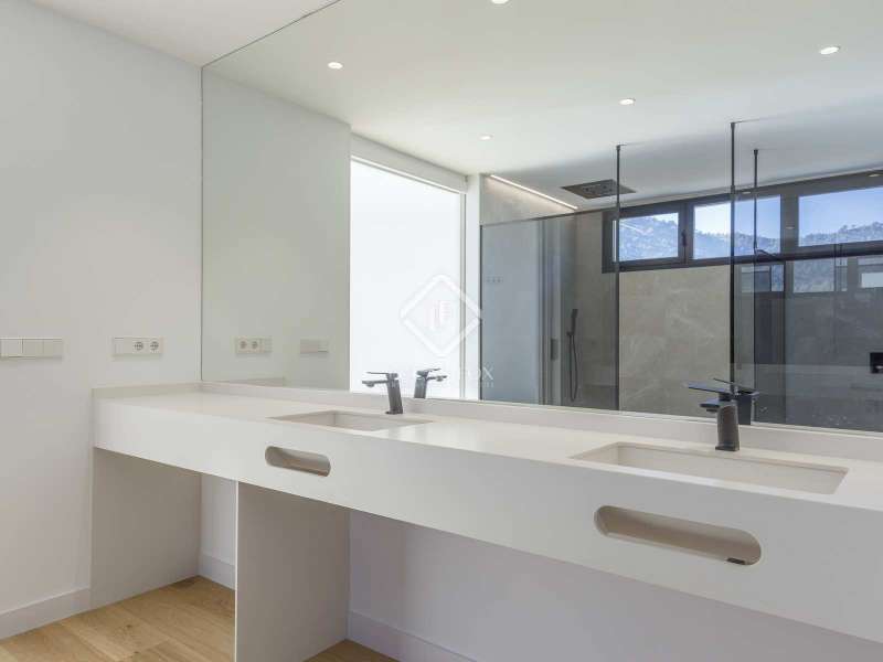 Exclusive brand-new avant-garde design villa, located on one of the best plots in the development, with impressive unobstructed views of the sea and the mountains. The house consists of 390 sqm of housing and terraces and 1,129 sqm of landscaped plot, in one of the best locations in Monasterios. The house, of modern construction and straight lines, is distributed over two floors, the main floor of 147 sqm, and the first floor where the night area is located, with an area of 125 sqm. It also has an auxiliary building next to the pool of approximately 35 m, which can be used as a guest house or leisure area. On the main floor we find a spacious, generously sized living room of more than 50 sqm, with large floor-to-ceiling windows with access to the terrace and views of the Garden. Next, we access an impressive designer kitchen, with white lacquered furniture and cream countertops, with a large storage capacity, and a comfortable central island. It has built-in appliances, as well as a practical technical and washing area, with access to the terrace. A guest toilet serves the day area. On this floor there is also a large double room with a complete bathroom en suite, ideal for guests. The night area is on the upper floor, offering 3 large bedrooms and 3 full bathrooms. The main one, of ample dimensions, has a large dressing room and a complete bathroom en suite. Enjoy pleasant views through large floor-to-ceiling windows, which open onto an impressive terrace of more than 70 sqm. All bedrooms have large white lacquered wardrobes. The house has several covered and uncovered terrace areas with a total area of approximately 150 sqm, with access from the living room and the kitchen. Next to the pool there is a leisure area, ideal for enjoying the pleasant Mediterranean climate, consisting of a multipurpose room, a kitchen and a full bathroom. It can also be used as accommodation for guests. The entire house has underfloor heating, an aerothermal system, natural wood floors, white lacquered interior carpentry and exterior with thermal and acoustic insulation. It also has two comfortable parking spaces and a practical storage room.