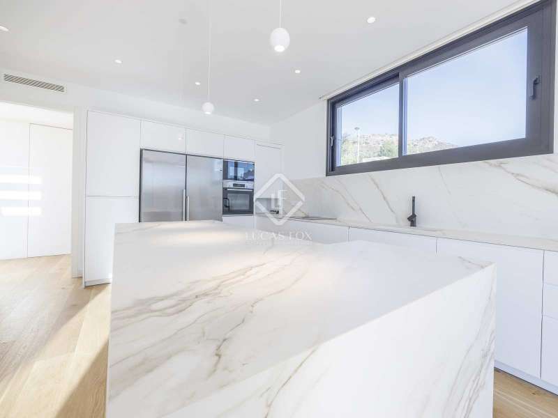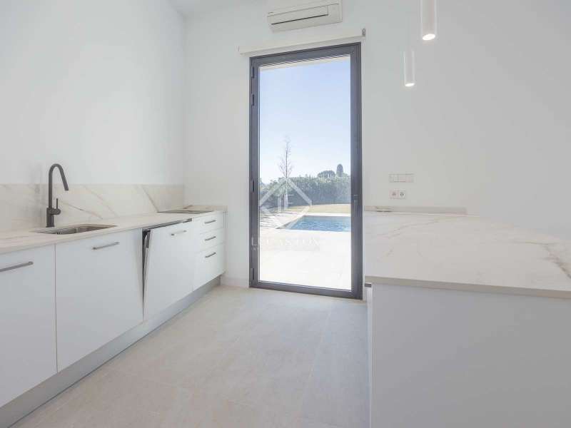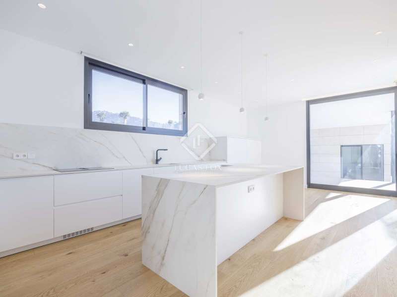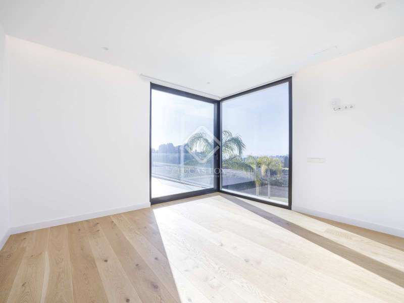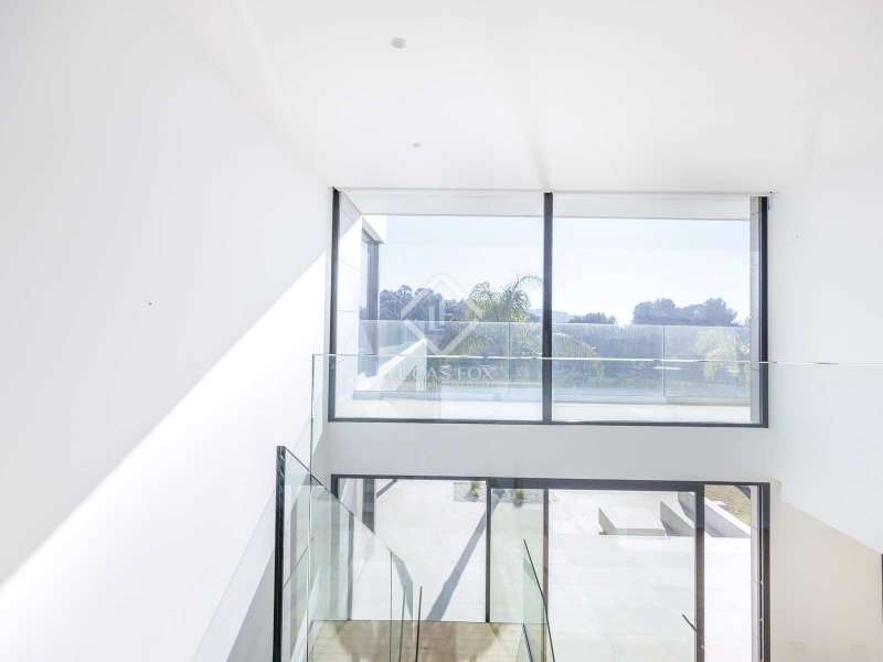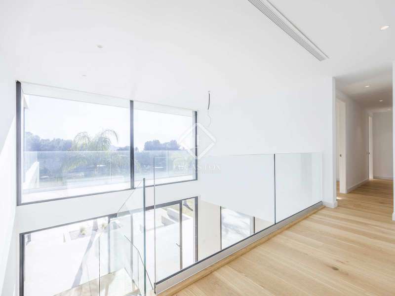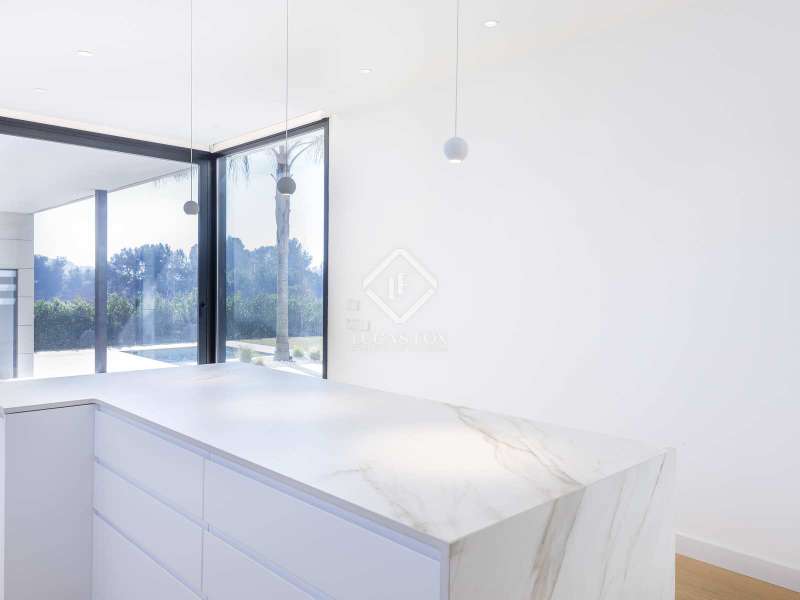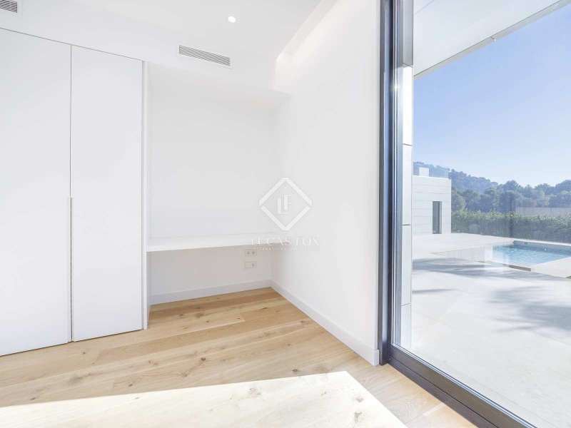 Exclusive brand-new avant-garde design villa, located on one of the best plots in the development, with impressive unobstructed views of the sea and the mountains. The house consists of 390 sqm of housing and terraces and 1,129 sqm of landscaped plot, in one of the best locations in Monasterios. The house, of modern construction and straight lines, is distributed over two floors, the main floor of 147 sqm, and the first floor where the night area is located, with an area of 125 sqm. It also has an auxiliary building next to the pool of approximately 35 m, which can be used as a guest house or leisure area. On the main floor we find a spacious, generously sized living room of more than 50 sqm, with large floor-to-ceiling windows with access to the terrace and views of the Garden. Next, we access an impressive designer kitchen, with white lacquered furniture and cream countertops, with a large storage capacity, and a comfortable central island. It has built-in appliances, as well as a practical technical and washing area, with access to the terrace. A guest toilet serves the day area. On this floor there is also a large double room with a complete bathroom en suite, ideal for guests. The night area is on the upper floor, offering 3 large bedrooms and 3 full bathrooms. The main one, of ample dimensions, has a large dressing room and a complete bathroom en suite. Enjoy pleasant views through large floor-to-ceiling windows, which open onto an impressive terrace of more than 70 sqm. All bedrooms have large white lacquered wardrobes. The house has several covered and uncovered terrace areas with a total area of approximately 150 sqm, with access from the living room and the kitchen. Next to the pool there is a leisure area, ideal for enjoying the pleasant Mediterranean climate, consisting of a multipurpose room, a kitchen and a full bathroom. It can also be used as accommodation for guests. The entire house has underfloor heating, an aerothermal system, natural wood floors, white lacquered interior carpentry and exterior with thermal and acoustic insulation. It also has two comfortable parking spaces and a practical storage room.