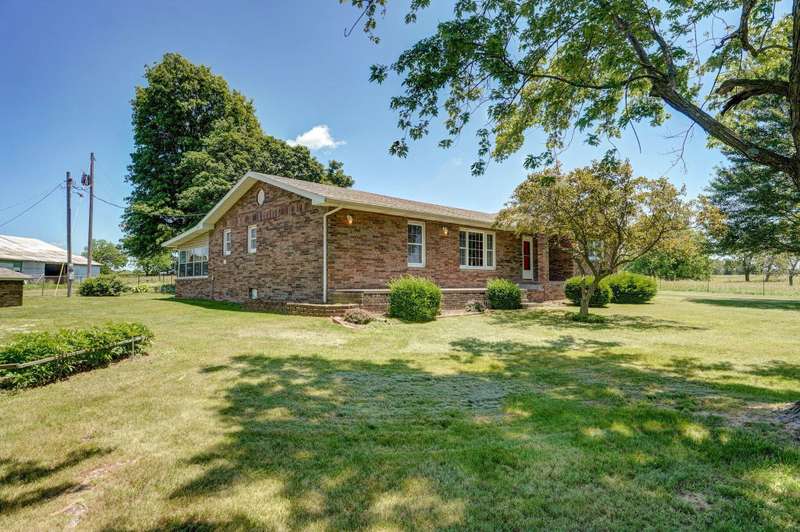 Come check out this all brick home. Great curb appeal. Fantastic landscaping. Garden spot. Great location. Setting on around 7 acres M/L .Over 1600 ft.. Three bedrooms 2 1/2 baths. very large living room. Nice kitchen with lots of storage. Home has Newer windows. Roof on Home and garage New Dec. 2024. Covered back sunporch. Also Cellar/Storm shelter underneath. Office with half bath. Nice big shade trees Beautiful views, Give it a park like setting. Sets back off the road. Outside woodstove heats the home and hot water. Detached two car garage that matches the house. an nice shed with concrete floor and electric. And a large barn that will even hold a fifth wheel camper/motorhome and more. Just minutes from the Monett Hospital.