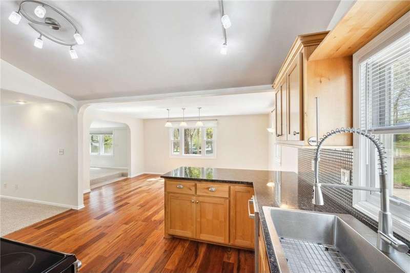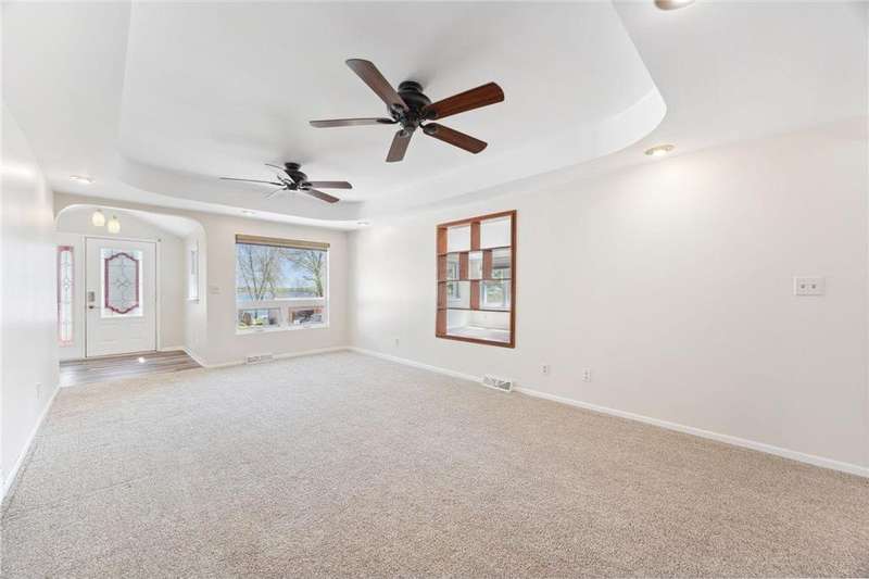 Enjoy this beautiful three bedroom home offering lake views. The property is a country oasis that includes three lots. Recent updates include a new garage floor with drain, a new concrete garage apron, garage door opener, upgraded garage windows, new carpeting on the upper level and updated ceiling features throughout most of the upper level (2024). Additional improvements in 2022 encompass new shingles, a retaining wall, front steps and front deck. The home also features a new furnace, air conditioner and heat pump installed in 2021, along with new patio pavers and a shed added in 2020. Additionally, this property features an updated kitchen with stainless steel appliances and premium custom cabinetry. This is an opportunity not to be missed.