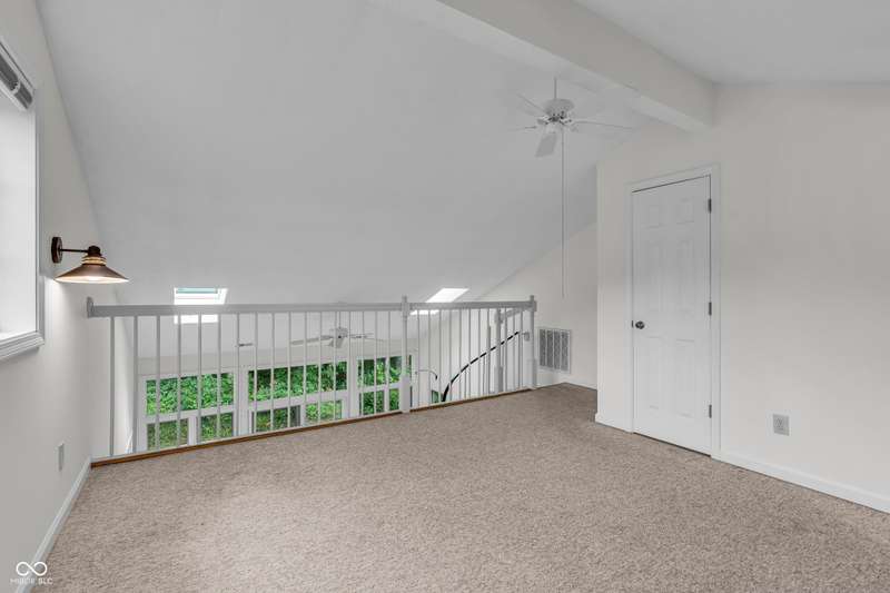 Tucked away in the beautiful, established gated community of Windridge, this freshly painted 2-bedroom condo features an open-concept layout, a four-season sunroom, and a finished loft. Step inside to a spacious great room with a cozy gas fireplace. The kitchen offers ample space and storage, including room for a breakfast table and a generously sized pantry. The primary bedroom boasts hardwood floors, large windows for plenty of natural light, and direct access to the sunroom. An additional bedroom with built-ins and an en-suite bathroom completes the main floor. A spiral staircase in the sunroom leads to a finished loft with its own full bathroom and closet-perfect for an office, workout area, or guest space. Just off the sunroom, a deck provides the ideal spot for outdoor furniture or a grilling setup in your tree lined backyard. A landscaper's dream canvas! Schedule your showing today!