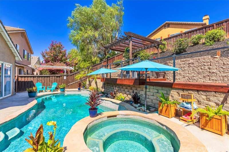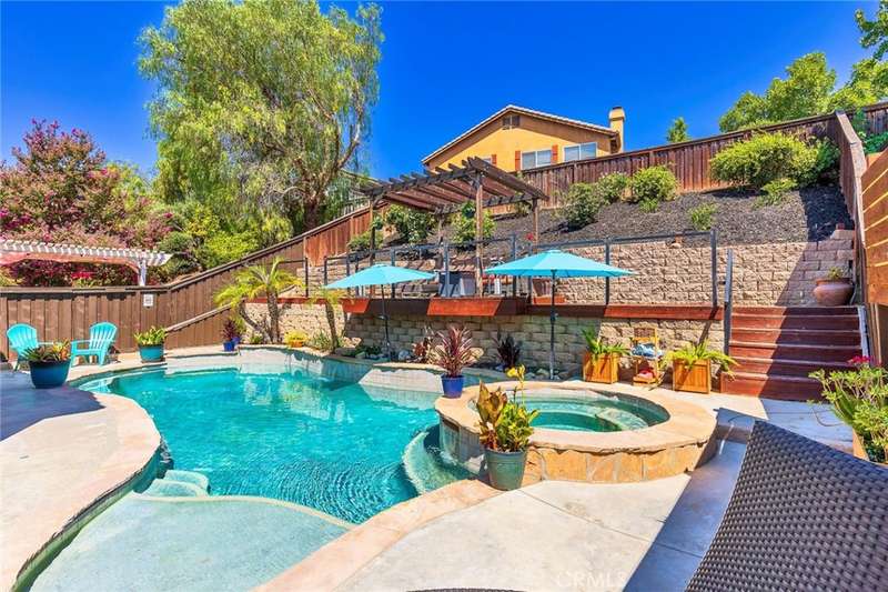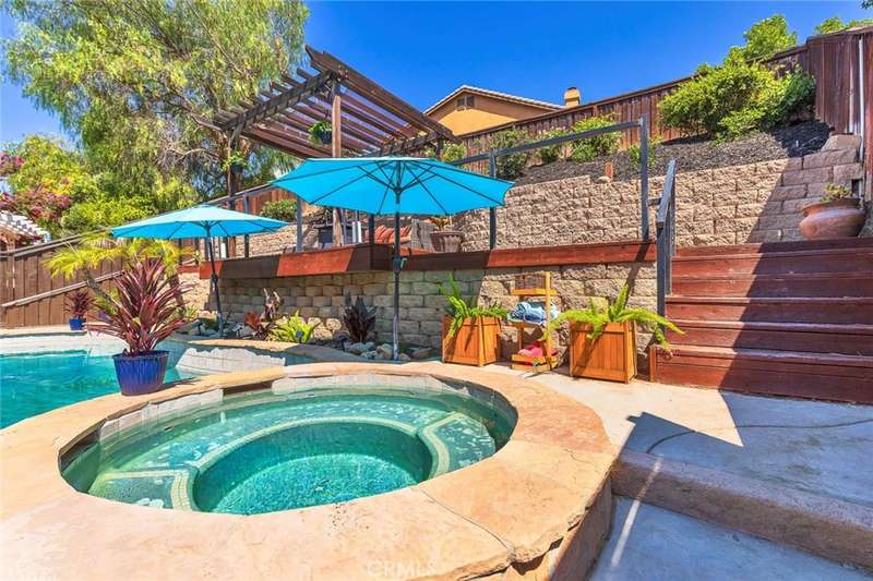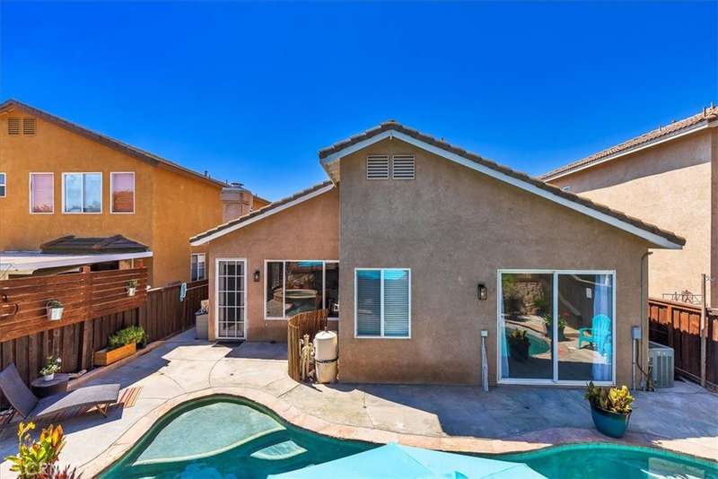 SINGLE STORY POOL HOME in the HEART of Temecula! This lovely home has been completely remodeled with a bright kitchen, large shiplap island for entertaining, barn door pantry, custom wood beams, Roman shade, wine fridge, stainless steel hood, stainless steel appliances and farm sink, Italian stacked stone backsplash, pot filler and sleek black quartz countertops. Enjoy the tranquility of a formal living and dining room that offers some separation for those cherished Holiday dinners or quiet conversations away from the crowd. Open concept Family Room/ Dining area is open to the adjacent kitchen where everyone gathers. Step outside into your entertainers backyard with lagoon style POOL AND SPA and unique upper deck that overlooks the pool area. Set up your projector and watch movies under the stars in the privacy of your own oasis! 4 bedrooms and 2 completely remodeled bathrooms! Secondary bathroom has been upgraded to a beautiful neutral color scheme with glass subway tile backsplash, subway tiled tub/shower, new paint, new bathtub, new toilet, new vanity, new mirrors, new lighting, new flooring and new fixtures. Primary suite is generous in size and has a SEXY SPA-like bathroom with modern yet neutral decor, elegant Italian marble tiled tub and shower area, floating soaker tub, large floating black vanity with gold accents, mirrors, lighting, new flooring, new toilet and fresh paint. Be the first to bathe in this luxurious bathroom after a relaxing day sitting pool side. This beautiful home is carefully crafted with 10 foot ceilings, arched doorways and 8 foot doors. Chantemar Way has a wonderful layout that also offers privacy between neighbors in a great location while providing easy access to the freeways for commuters. Rarely ever the need for AC! This home is energy efficient and maintains temperatures even when outside temps are into the 90's. But just in case you do need AC, have comfort in knowing you are Saving $$$ with your energy producing solar panels. Take over low $200 payments and never pay an electric bill. AND Convenience at its finest! Take in a pre-dinner stroll over to the park and then to your favorite restaurant without even starting your car! All with LOW TAXES, No HOA, Affordable Solar and commuter friendly. You don't want too miss it! Get on the schedule now! Subject to Cancellation of current escrow. No fault of sellers or home, buyers could not perform. OPPORTUNITY KNOCKS!