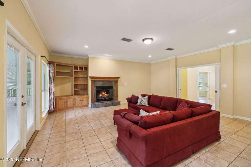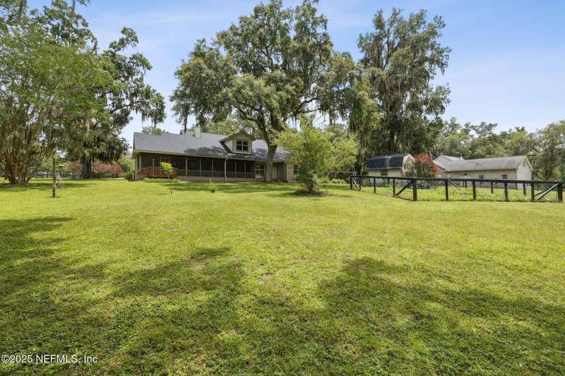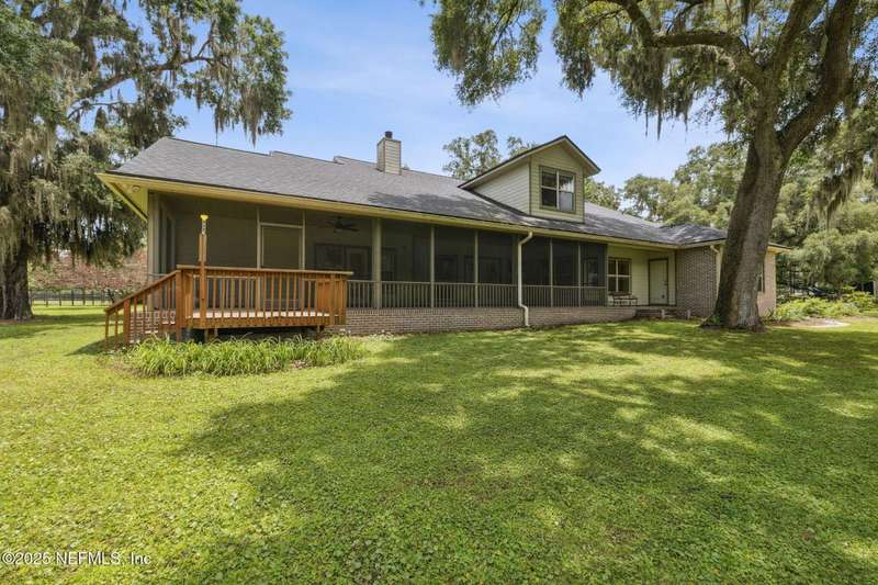Peaceful Equestrian Community! Welcome to this gorgeous, custom-built residence set on 2.71 picturesque acres along a scenic, tree-lined lane. Built in 2005 & lovingly maintained by its original owners, this 5-bed, 3-bath home blends charm, comfort, & thoughtful design-complete with a split floor plan and roll-in showers in every bath. Natural light fills every room, from the cozy gathering room with wood-burning fireplace & built-ins, to the dining room overlooking the expansive front lawn, to the spacious kitchen & breakfast nook with views of the wooded backyard. Enjoy the outdoors year-round on the large screened back porch or the welcoming front porch. The primary suite is a private retreat with its own porch access, two walk-in closets, dual vanities, a soaking tub, & a walk-in shower. Upstairs you'll find the fifth bedroom, a generous bonus/flex room, & extra storage-note that this space is not included in the tax records. Beautiful oak trees, colorful landscaping, & a creek at the back of the property set the scene. Recent updates include a 2-year-old roof, a 1-year-old water heater, & a septic system pumped 3 years ago. Tile floors run through the main living areas, with carpet in the bedrooms, plus a two-car garage and workshop. With Jennings State Park horse trails just minutes away & warm, welcoming neighbors all around, this is country living at its finest come see it for yourself - you'll never want to leave.