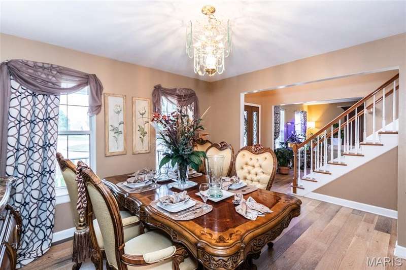 Welcome to this beautiful 4-bedroom, 2.5-bath home tucked at the end of a quiet cul-de-sac in Florissant! Step inside to an inviting open foyer with wood floors. To your left, a cozy family room, and to your right, a formal dining room perfect for entertaining. The spacious living room features a warm fireplace framed by custom built-in bookshelves, an ideal spot to unwind on a crisp fall evening.The kitchen offers gas appliances, a charming breakfast nook, and a window over the sink with views of the large, flat backyard. Convenient main-floor laundry and a guest half bath add everyday ease.Upstairs, retreat to the expansive primary suite with two walk-in closets, room for a king-size bed, and a spa-like bath complete with soaking tub and separate shower. Three additional bedrooms and a full hall bath provide plenty of space for family or guests.The unfinished basement is ready for your personal touchwhether storage or future living space. A two-car garage and additional street parking complete the package. Dont miss the opportunity to make this home your own!