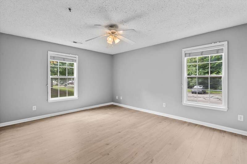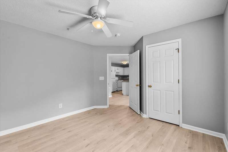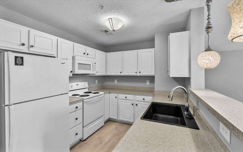 Price Adjustment-Motivated Seller! Great one-level condo with private exterior entrance offering zero steps into the unit, or access the secured building entrance. Roomy 2 bedrooms (just freshly painted) 2 bath condo with laminate floors and bathroom updates. Primary has bath with walk-in shower. Open design with large windows, built-in shelves, ceiling fans, and large closets. Refrigerator remains in the kitchen; pantry offering additional storage. Laundry room with washer and dryer remaining. LOCATION! Walk to Oakview Recreation Center and quick access to restaurants and shopping, and only 2 miles to High Point University. AC 2020**Water/Sewer included in Monthly HOA