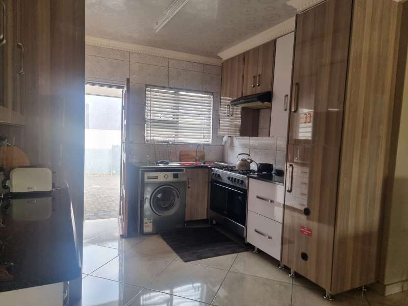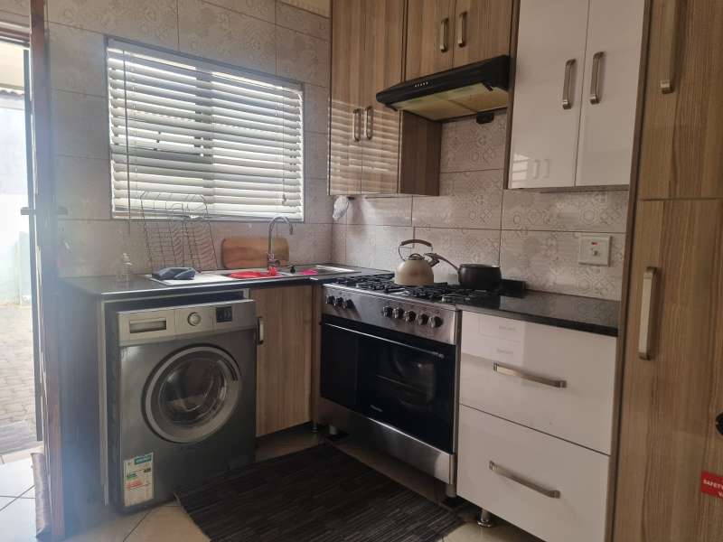 This neat and inviting 3-bedroom, 2-bathroom property offers comfortable living in a sought-after security complex. Step into a bright open-plan lounge and fitted kitchen, beautifully finished with granite countertops, a gas stove, and polished tiles throughout for a modern touch. Enjoy the convenience of a wrap-around garden, perfect for outdoor relaxation or family gatherings. Safety is prioritized with burglar bars, while a double garage provides secure parking and extra storage space. Move-in ready and designed for easy living, this home is ideal for families or buyers seeking a low-maintenance lifestyle in a safe, well-managed complex. ? Don’t miss out—book your viewing today!
