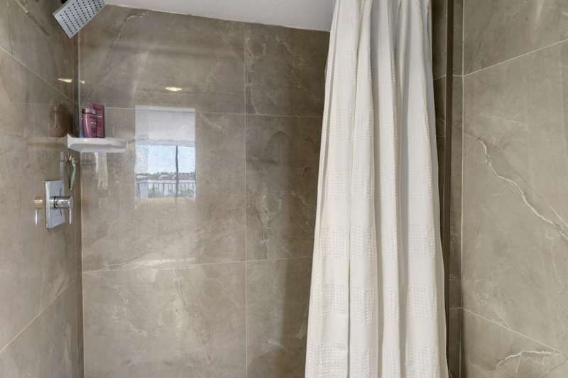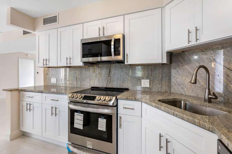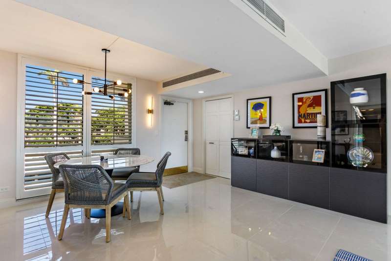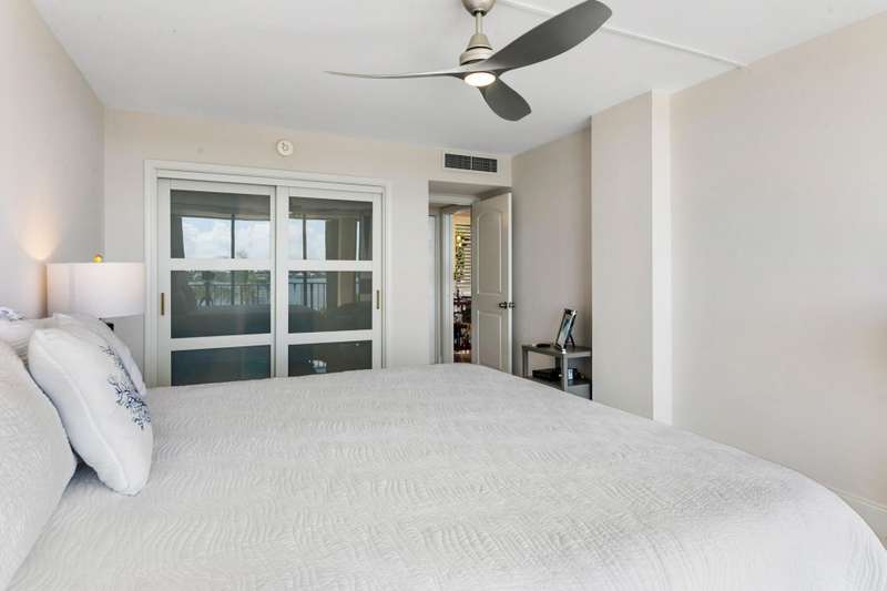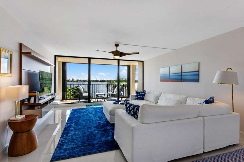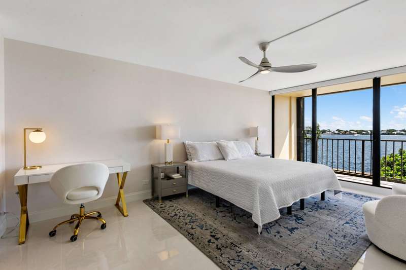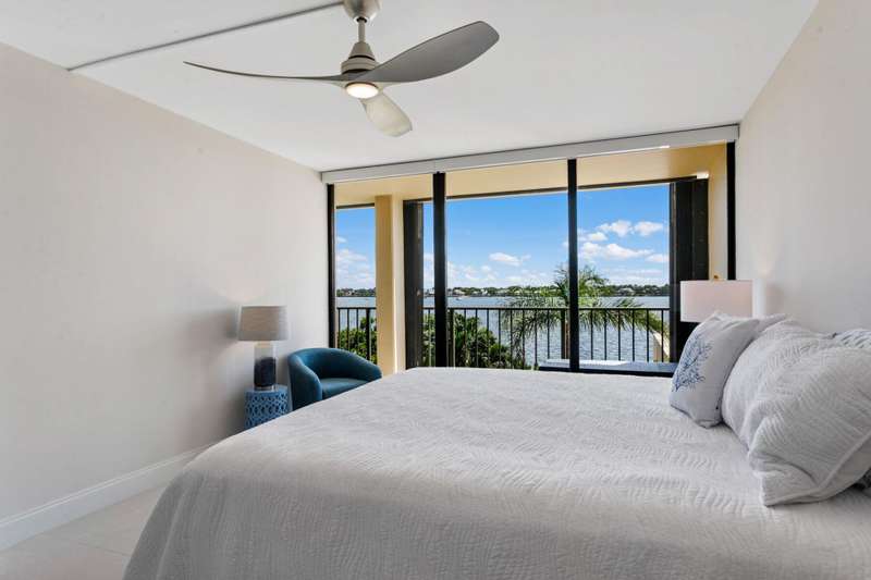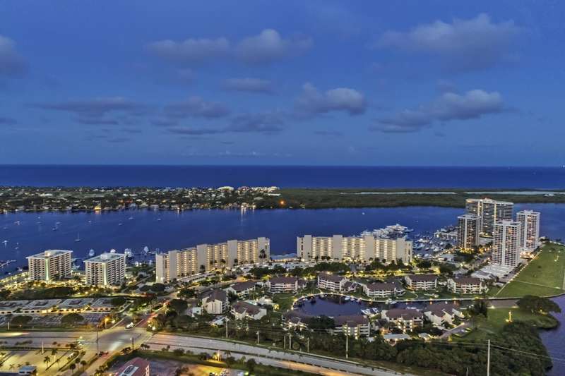 Dont miss this stunning 2 bedroom 2 bath split floor plan condo. Totally remodeled including new kitchen 2 new baths. 1 walk in shower and 1 tub and shower combo. Custom closet doors. 24x24 inch tile floors throughout. Desirable end unit with unobstructed views of Old Port Cove Lagoon, Marina, Intracoastal and Lost Tree Village. 250 sq. ft. covered balcony with access from every room. Two mile walking path along the water. Fitness center, sauna. 24/7 manned security gate. Restaurant on premises.