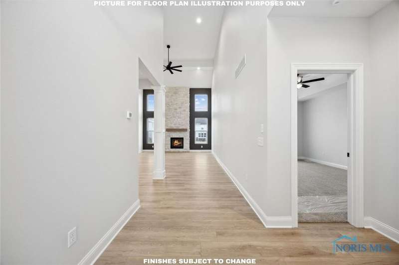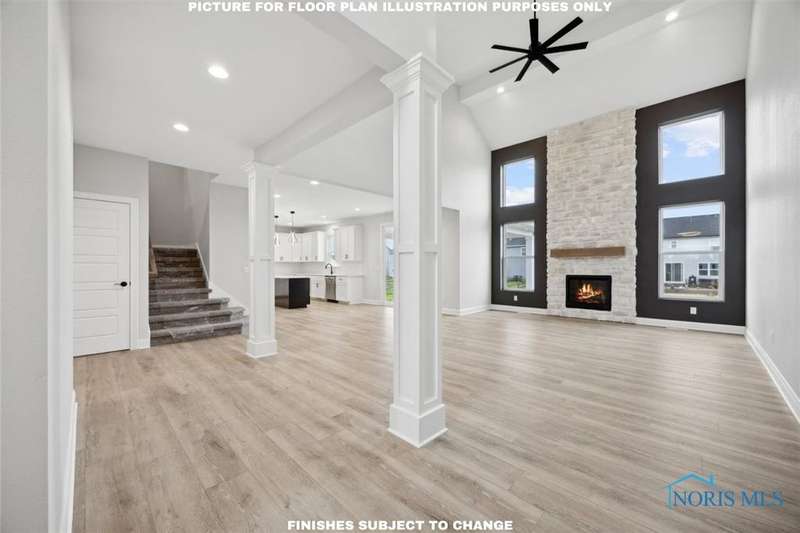 First-floor owner's suite featuring glass-enclosed tiled shower, soaking tub, and a spacious retreat. The living room is a two-story grand gathering area, highlighted by a floor-to-ceiling stone fireplace. The chef's kitchen boasts a pantry, custom cabinetry, an island with built-in appliances, a gas stove with a range hood, and a convenient spice kitchen with extra counter space and cabinetry. Enjoy outdoor living on the covered patio and a spacious lot. Don't forget about the four additional bedrooms upstairs and two full bathrooms. Pictures are for informational purposes only.