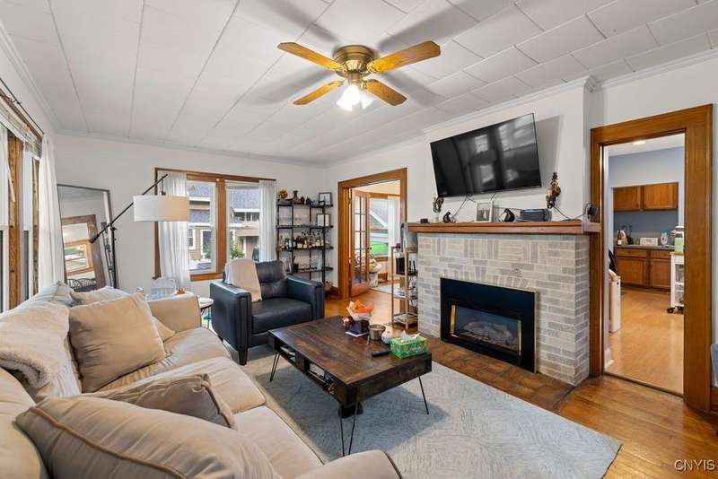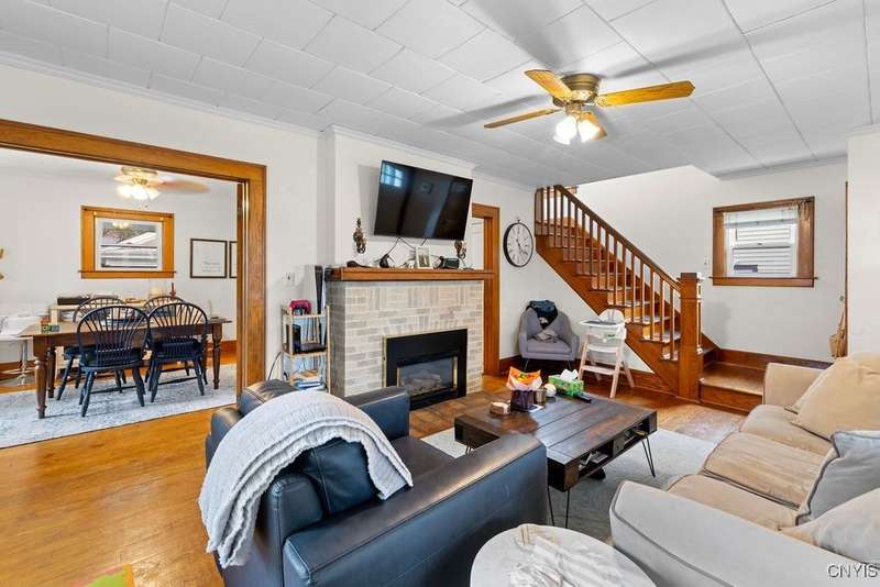 Welcome to historic Tipperary Hill! This charming 3-bedroom, 1.5-bath home is completely move-in ready and perfectly situated in the heart of it all. With great curb appeal, you're greeted by a welcoming front porch that opens into a bright and inviting entryway. Inside, an abundance of natural light fills the spacious living room, featuring gleaming hardwood floors and a cozy gas fireplace.The updated kitchen offers plenty of cabinet space and flows seamlessly into the formal dining room. A new rear door leads out to the back porch and a quaint backyard, complete with a fun Key West?style party bar shed with a hatch door, ideal for gatherings or summer nights at home.Upstairs, you'll find three comfortable bedrooms and a beautifully updated full bath with new tile, vanity, and shower. The full basement provides laundry and extra storage space.Additional updates include newer windows, freshly painted interior and exterior, hot water tank and more. Recent rents have averaged around $2,000 per month, offering great potential for both homeowners and investors. Walking distance to Colemans, Blarney Stone, Burnet Park and all that Tipp Hill has to offer. This is truly a turn-key home ready for you to move right in and enjoy the best of Tipp Hill living!