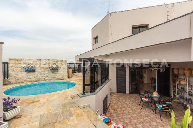 Primeiro pavimento com sala ampliada, lavabo, sala de jantar e cozinha planejada, 4 dormitórios com ar condicionado sendo 2 suítes (máster com hidro e closet), escritório, jardim de inverno. Segundo pavimento possui sala para 4 ambientes, bar, cozinha de apoio, lareira, lavabo, piscina, churrasqueira e sauna com ducha. Próximo aos melhores colégios da região como Porto Seguro, Escola Graduada e Colégio Cervantes. - ESTUDA PERMUTA.
