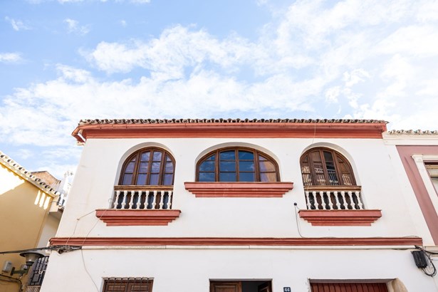 For sale, a charming corner house that exudes the allure of traditional popular architecture in Málaga. This property is located in the Molinillo neighborhood, in the central district of Málaga. It's just a 10-minute walk from the historic center, brimming with local services and commerce, allowing you to feel at home while being close to the vibrant tourist area.The area's main attraction is the Salamanca Market, a Mudéjar-style building known for its unique and widely recognized architecture. The house is spread over two floors and boasts two facades that provide ample natural light. The facade stands out with its vibrant colors, elegant cornices, and curved wooden windows. We are also captivated by the generous ceiling height on both the ground floor and the first floor, as well as the exposed wooden beams that add a special charm.The current layout of the house includes an entrance hall on the ground floor, with an old garage on one side, converted into a room or lounge, and a