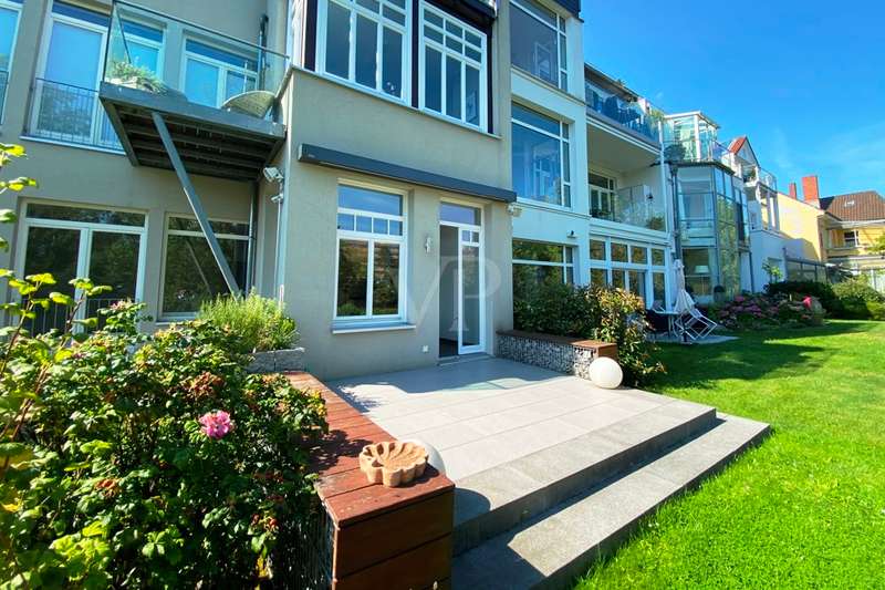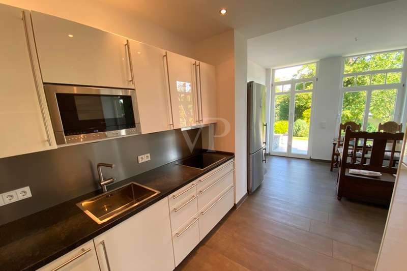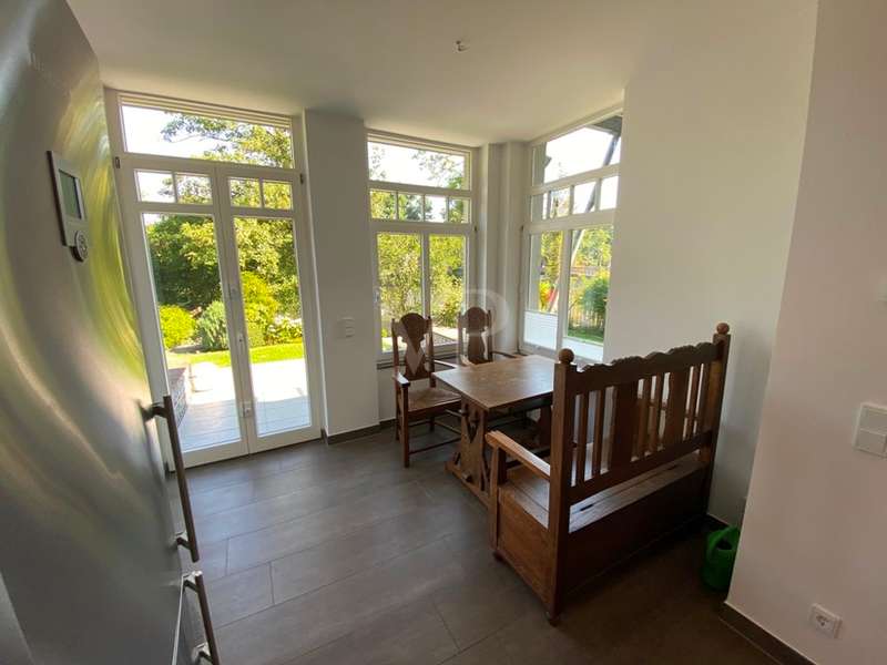 This modern first floor apartment with a living space of approx. 106 m² is for sale. The building was built in 1910 and extensively modernized in 2020. The property is in very good condition and presents itself as a real gem. The spacious apartment comprises a total of 3.5 rooms, including 2 bedrooms and a bathroom. The high ceilings and large windows provide a pleasant atmosphere and plenty of light. The open-plan design gives the apartment a modern and inviting ambience. A special highlight is the fireplace, which provides additional coziness and warmth in the winter months. The property has underfloor heating, which ensures even heat distribution throughout the living area. State-of-the-art technology and high-quality materials characterize the furnishings. The first floor apartment is in an attractive location with a wonderful panoramic view. The surrounding area is characterized by tranquillity and nature. Nevertheless, shopping facilities and public transport are available in the immediate vicinity. The apartment is ideal for couples or small families. The layout of the rooms ensures optimal use of the available space. The bathroom is modern and stylish, with a walk-in shower and high-quality fittings. The first floor apartment has its own entrance and a private garden area that invites you to relax and linger. Here you can enjoy the warm summer evenings and spend time with family and friends. In summary, this modern first floor apartment offers a perfect home with its high-quality furnishings, spacious living area and charming outdoor space. The condition of the property, the central location and the modern amenities make this offer particularly attractive. Contact us today to arrange a viewing and experience this property in person. Special features: High-quality bathroom ceramics from Duravit and fittings from Dornbracht; mirror cabinets from Keuco; fireplace from Brunner; locking system; terrace with gabions and herb bed; electric awning from Kleiber with wind sensor and LED lighting; entrance door with video system from Renz; alarm system from Sitec; high-quality fitted kitchen with fully automatic coffee machine and induction hob; pleated blinds and insect screens on the garden side; exterior blinds with Somfy control on the street side; 1 additional cellar room