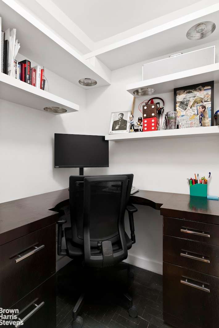 Framed by a wall of windows, the expansive living and dining area is filled with natural light and overlooks a quiet, tree-lined street and the lush greenery of Stuyvesant Park. A gracious foyer opens into this inviting entertaining space, while a separate home office - tucked away for privacy - offers the flexibility to function as a custom walk-in closet.