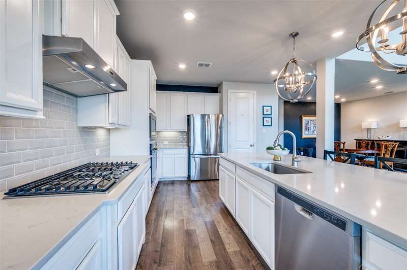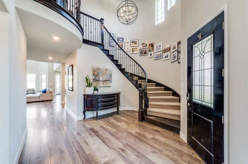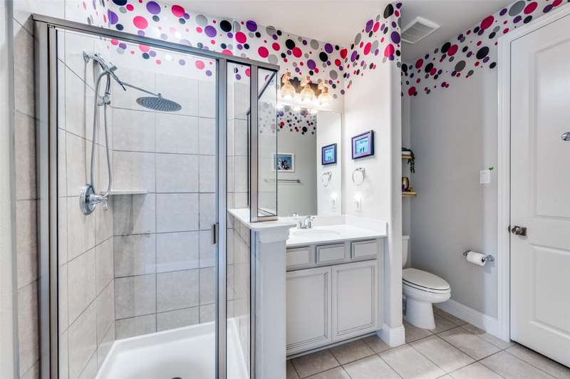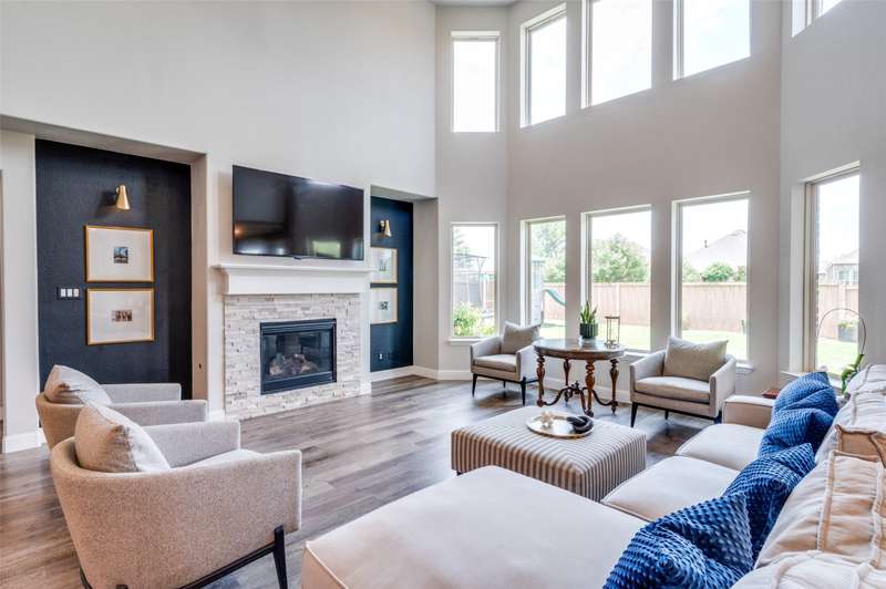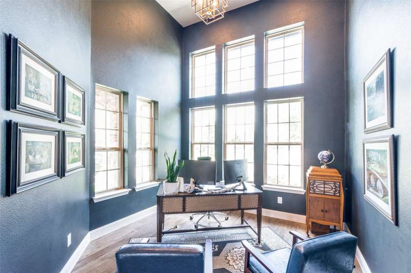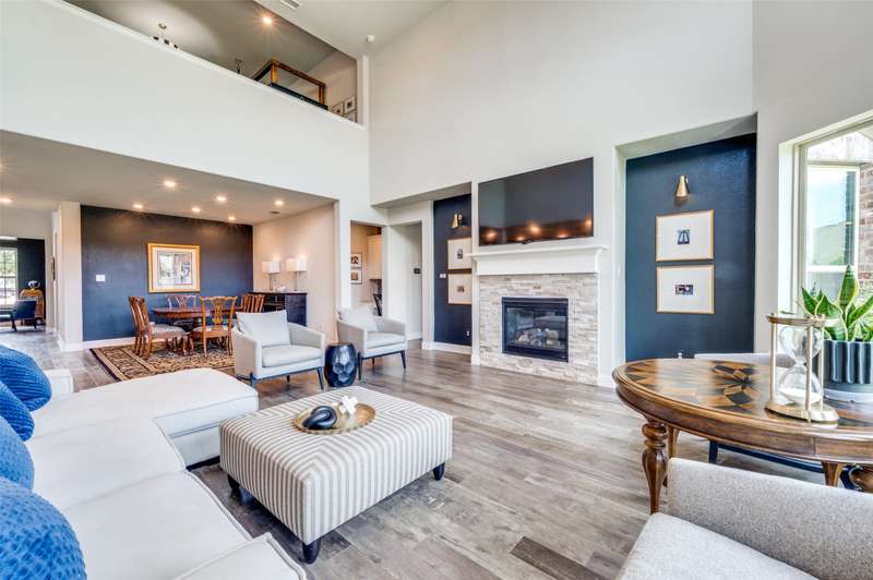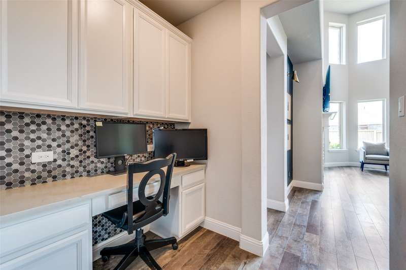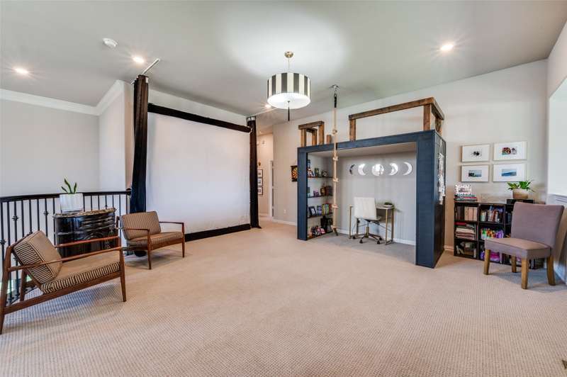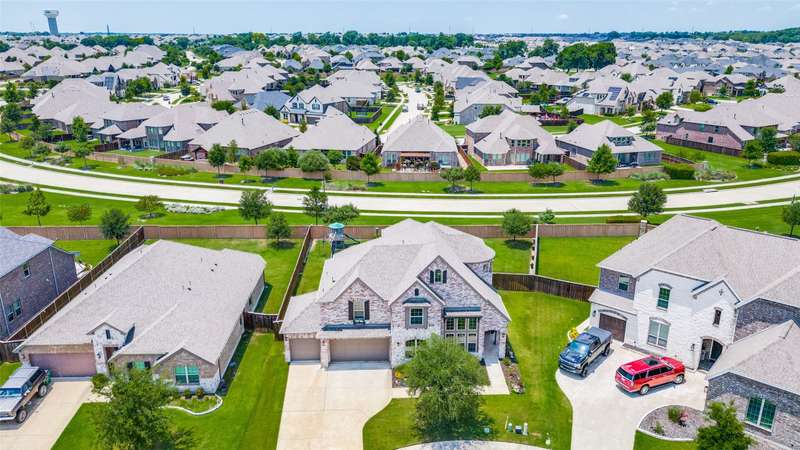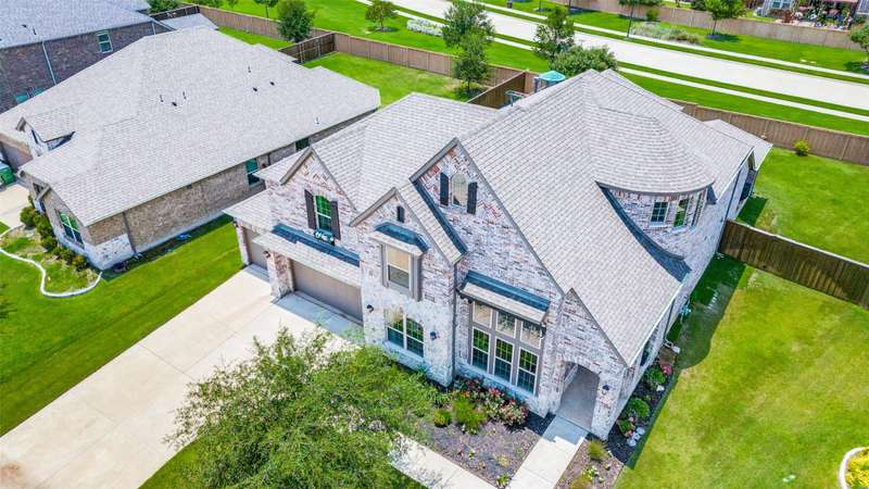 Welcome to this beautiful 5 bedroom, 4 and a half bath home located in the desirable Trinity Falls community. Step inside to a grand, open entry that immediately sets the tone for this spacious and inviting floorplan. A private study and a secondary bedroom with a full bath are conveniently located downstairs, along with the luxurious primary suite featuring a generous layout, dual vanities, separate shower and soaking tub and a large walk-in closet. The open concept kitchen is perfect for entertaining, complete with gas cooktop, Corian countertops, built-in microwave and ample cabinet space. You'll also find tasteful accent paint throughout, a built-in desk area, and thoughtful touches that make this home both functional and stylish. Upstairs, you'll find three additional bedrooms, a spacious media room, and a separate living area. A unique loft space has been creatively built out within the original loft, ideal for a cozy library, homework nook or imaginative kid's retreat. Additional features include floored, climate-controlled attic space and added insulation for energy efficiency. This house has TrimLights to make all your holidays a glorious explosion of customizable color. Trinity Falls offers a wonderful lifestyle with community parks, lakes, and scenic walking trails just steps from your door. This home truly offers something for everyone. Don't miss it!
