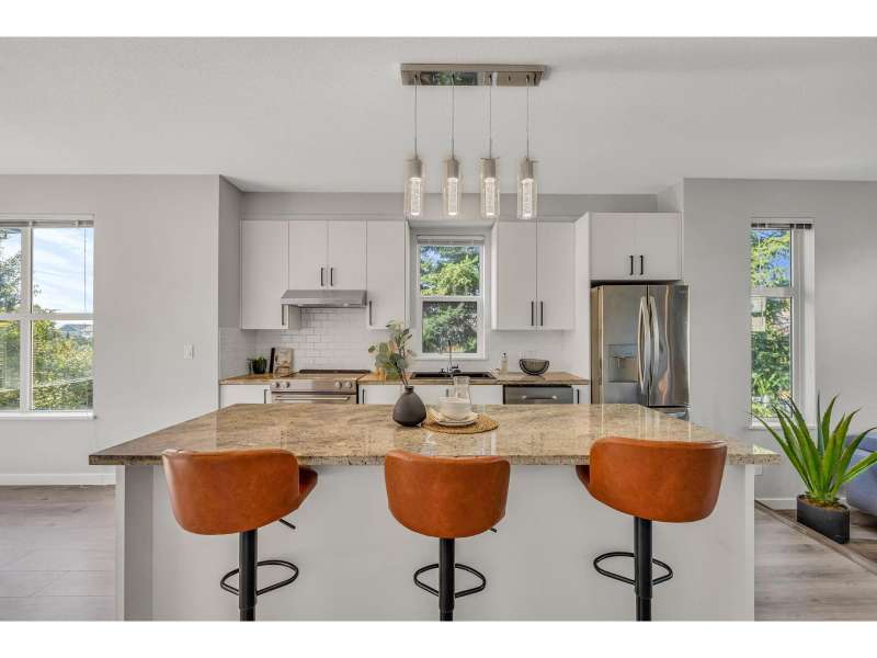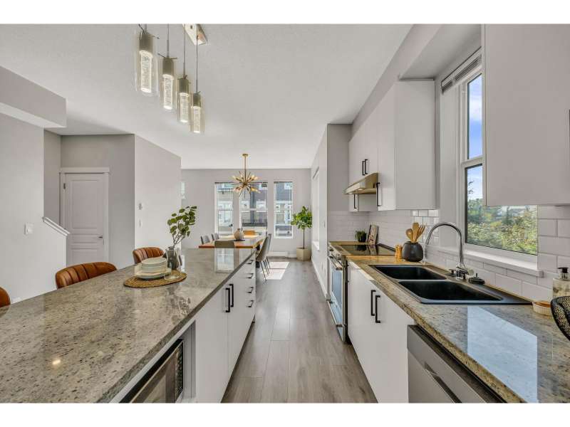 Welcome to this RARE bright & spacious 3-bedroom, 3-bathroom END UNIT at EQUINOX! With 9 ft ceilings and an abundance of natural light from 3 sides, this home offers an inviting open-concept layout perfect for both everyday living and entertaining. The gourmet kitchen is the heart of the home ad comes with granite countertops, S/S appliances, and a very generous island. Additional highlights include a dble tandem garage, a private patio, and a beautifully fenced backyard. As a resident, enjoy access to the SUNSTONE CLUB, a 12,000 sq. ft. amenity centre with outdoor pool, hot tub, gym, basketball court, party lounge, theatre room, and 2 guest suites. Walking trails, green spaces, and playgrounds are just steps from your door. SEP 28 OPEN HOUSE CANCELLED. (id:58403)