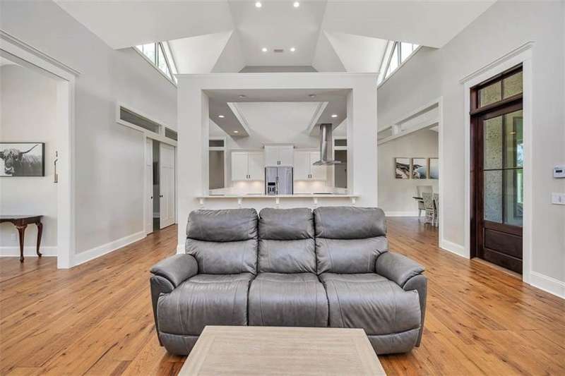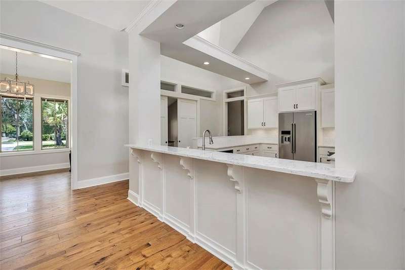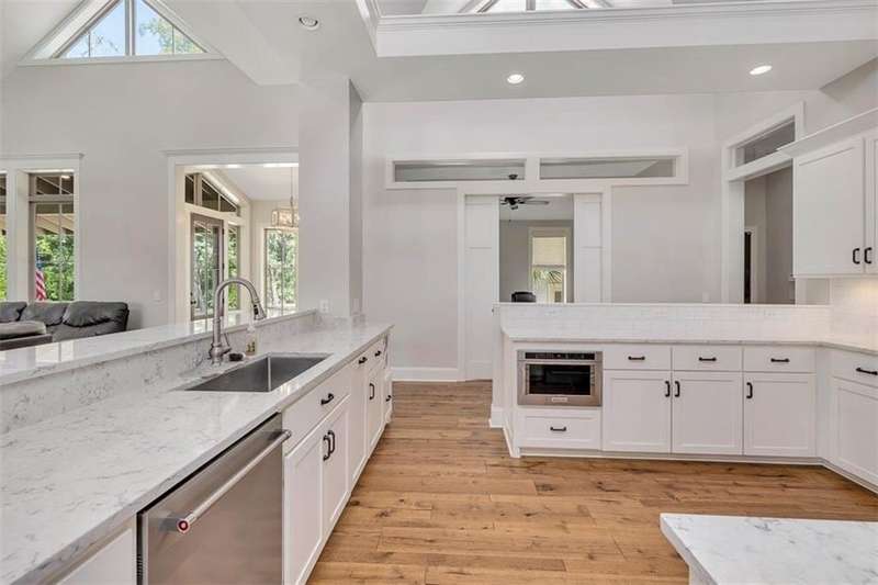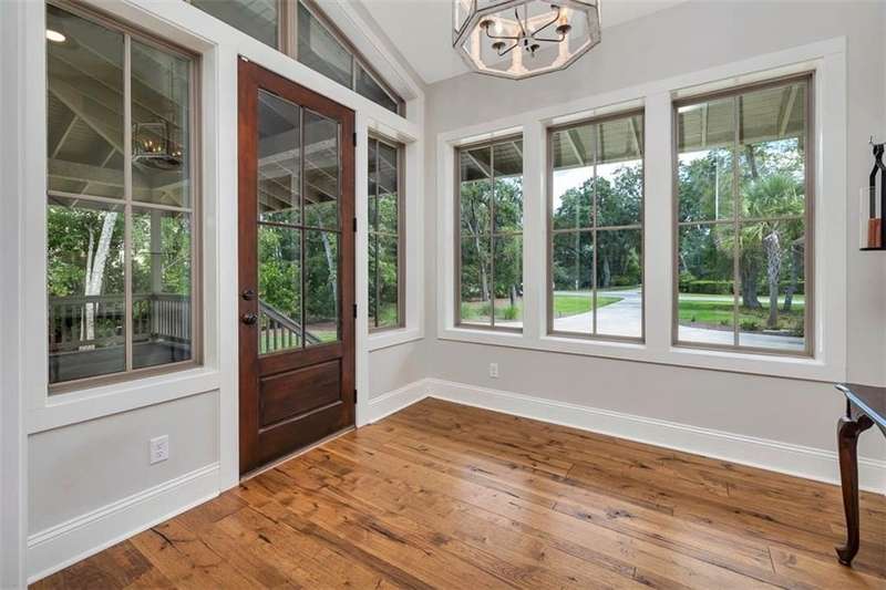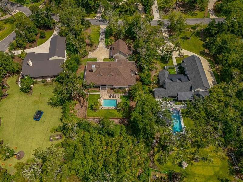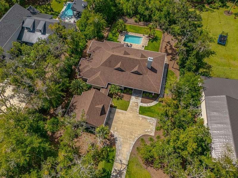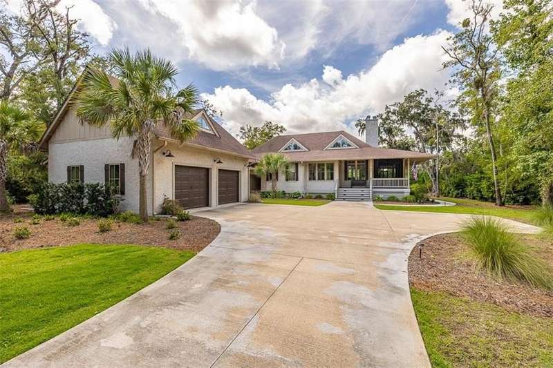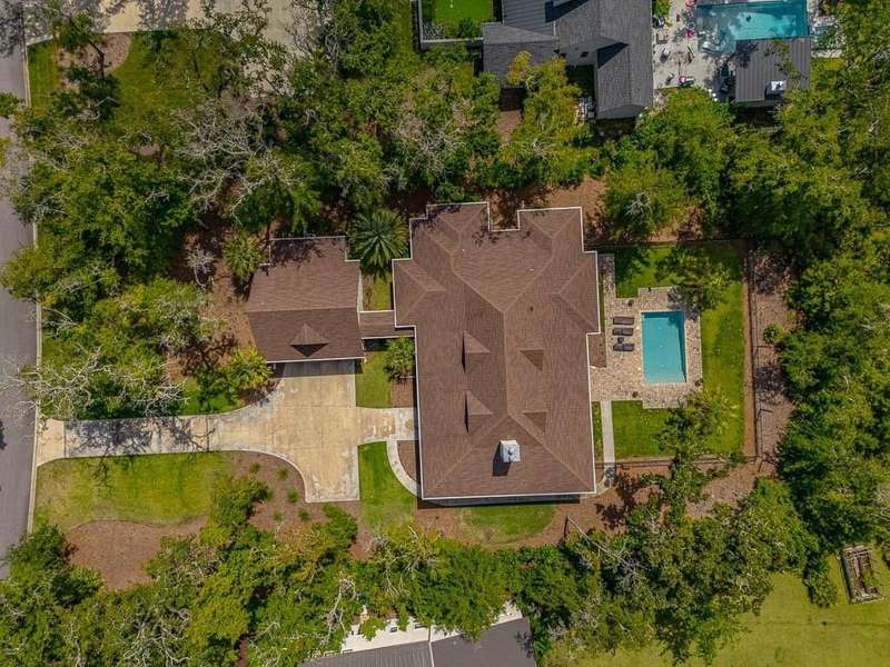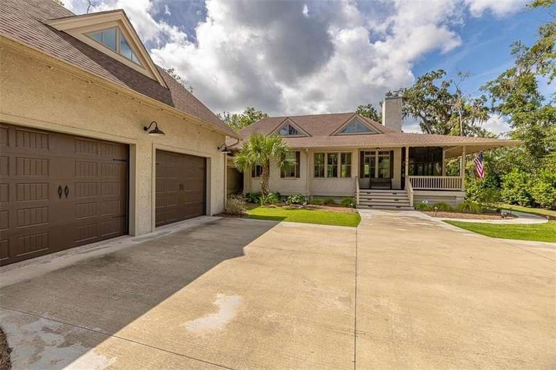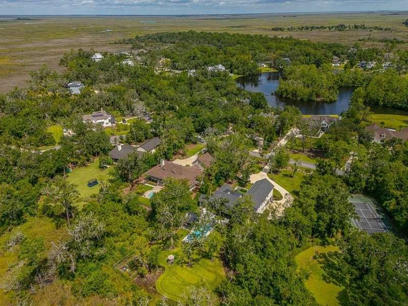 Welcome to 164 Stillwater, a beautiful custom built home situated on 1.09 acres with heavily wooded private views as well as marsh in the rear. Built in 2019, this is a well maintained one story home with wrap around porches with Trex decking and an abundance of natural light flowing throughout. The main house is 2,928sf and offers a primary suite with 2 walk-in closets and a separate office/sitting area, 2 additional bedrooms each with ensuite baths, chef's kitchen, large living room with cathedral ceilings, built-in bookshelves & gas log fireplace, dining room with pool and rear views and a separate office. Hardwood flooring throughout, custom cabinets, wood built-in closet shelves, heated pool with paver pool deck, Generac generator, aluminum fenced rear, wrap porches that are partially screened with an outdoor fireplace, Lutron lighting, security system, deep-water well for the irrigation system, mosquito misting system, conditioned 2 car garage and storage room, and too many other upgrades and features to list. This home also offers a private guest suite above the 2 car garage that is 507sf and provides a kitchenette and an additional bedroom/bathroom. Stillwater is a gated community that has a tennis court and a large lake with a dock, and is less than 3 miles from the Hampton Marina.