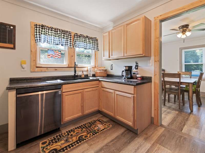 Discover this charming and renovated 3-bedroom, 1-bath ranch home, conveniently situated between the lovely downtowns of Waynesville and Canton. Step inside to find a home that has been gutted and meticulously rebuilt from the studs up. Enjoy peace of mind with new double-pane windows and a brand-new metal roof. Safety and durability are paramount, with both the roof and the house securely strengthened and protected with hurricane clips. The full basement provides ample space and potential. While Hurricane Helene did bring water into the basement, this was easily remedied and did not impact the main living areas of the home. This home is being offered furnished, with the only exception being the sofa, providing an effortless move-in experience for the new owner. Whether you're looking for a comfortable starter home or a lucrative investment, this property offers both long-term and short-term rental opportunities. Don't miss out on this exceptional chance to own a move-in-ready home.