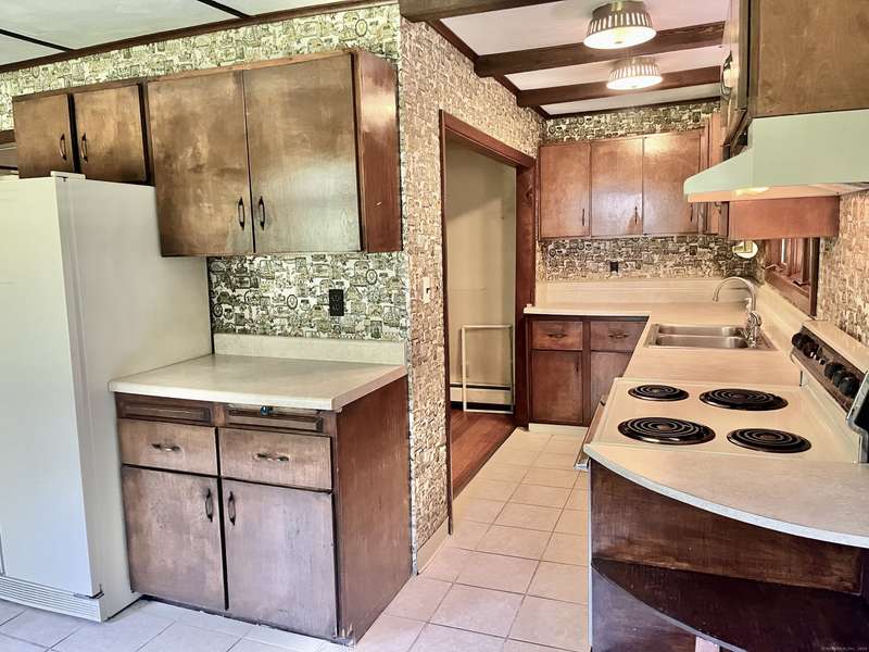 This solid farm house is dated, but full of potential. It is in a secluded setting while being conveniently located near shops, restaurants, parks and commuter routes to local highways. There is a large covered deck off the kitchen entrance near the driveway off of Oakridge Street and a covered porch on what now functions as the backyard of the house facing Hickory Street. Large living room/family rooms, eat-in kitchen, hardwood floors (hardwoods believed to be under some of the carpeted areas) and level side yard for family fun. The primary bedroom and one of the two full bathrooms is on the main floor. Three smaller additional bedrooms and the second full bathroom are upstairs. The large walk-out basement has high ceilings and an adjacent attached garage. This classic home has been well maintained and is awaiting the vision of its next owners. Home warranty provided through American Home Shield gives Buyer peace of mind!