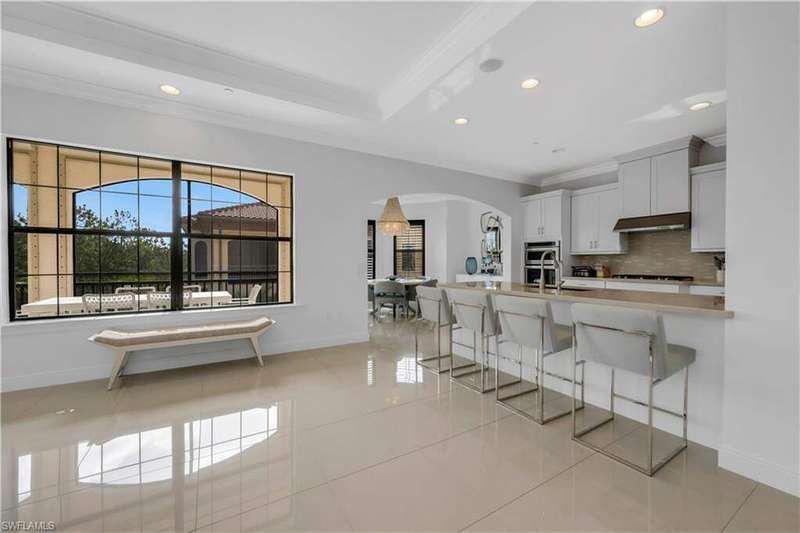 Esperanza at Tiburon - Professionally-Decorated Turnkey-Furnished Top-Floor Luxury Residence with Golf Membership Immediately Available. Experience refined Naples living in this beautifully updated and Clive Daniel-decorated penthouse-level residence in the sought-after Esperanza at Tiburon, home to the Ritz-Carlton Golf Resort and two Greg Norman-designed championship golf courses. This immaculate three-bedroom, three-and-a-half-bath end unit combines sophisticated design with serene privacy-no units above and panoramic preserve views that provide tranquility from sunrise to sunset. An inviting open-concept great room features soaring ceilings, custom millwork, high-end artwork and designer finishes throughout. The chef's kitchen offers white cabinetry, matching quartz countertops, high-end appliances, and a spacious island perfect for casual dining or entertaining. A formal dining area flows seamlessly to the expansive screened lanai, an ideal retreat for morning coffee or relaxing evenings surrounded by a lush tropical backdrop. The primary suite serves as a private sanctuary with lanai access, a large custom-fitted walk-in closet, and a spa-inspired bath with dual vanities, soaking tub, and frameless glass shower. Two guest suites, each with its own ensuite bath and walk-in closet, ensure comfort and privacy, while the den with a private balcony provides flexible space for work or relaxation. Additional highlights include wood and tile flooring, designer lighting, plantation shutters, a private elevator that opens directly into the residence, and hurricane protection provided by impact glass windows and doors, as well as storm screens out on the patio. Under building garage with two assigned parking spaces and private storage room provide convenience and security. Offered turnkey furnished, the home showcases a curated collection of high-end pieces balancing sophistication and coastal warmth-move right in and enjoy the Tiburon lifestyle. Residents of Esperanza enjoy resort-style amenities including a tropical pool and spa, grilling area, and private clubhouse. Optional Tiburon Golf Club memberships provide access to 36 holes of world-class golf, tennis, fitness center with personal trainers, spa services, concierge, and dining. Owners also enjoy privileges at both Ritz-Carlton resorts and a private shuttle to the beach with chairs, umbrellas, and towels provided. Ideally located in North Naples, just minutes from Mercato, Waterside Shops, white-sand beaches, and downtown Naples, this top-floor corner residence offers exceptional natural light, breathtaking preserve vistas, and a rare sense of single-family privacy within one of Naples' premier resort communities. Lives like a single-family home - penthouse privacy, resort amenities, and timeless elegance in the heart of Tiburon.