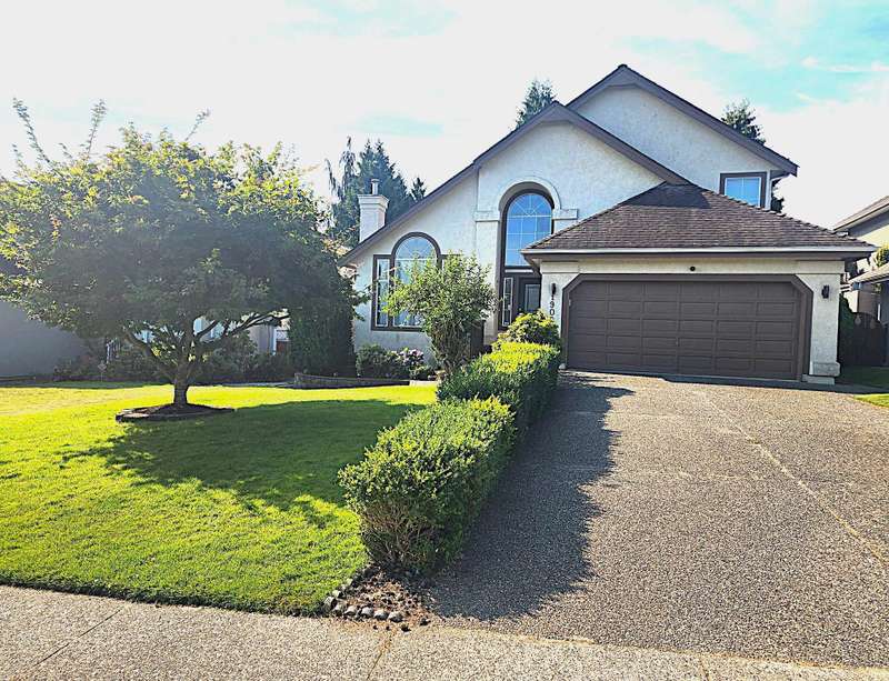Quiet & bright 2-storey house in center of Cloverdale. South facing 7266' lot with 5 bedrooms and 3 bathrooms very well kept. High ceiling living room with big family room (2 fireplaces) and kitchen with eating nook. 1 bedroom on main floor with 4 spacious bedrooms upstairs. Updated furnace with heat pump Air conditioning, flooring and appliances. Sliders off nook to almost 400 sqft entertaining deck and big yard ideal for family gatherings & Summer BBQ. Big crawl space for storage & double car garage with EV charging. Minutes' drive to future Clayton skytrain station at 190 St. & Fraser Highway, shopping centers, Costco, Walmart & Superstore. Close to schools, parks, recreation center, PKU & Trinity West University. Open House 2 - 4 pm Sunday Nov 2