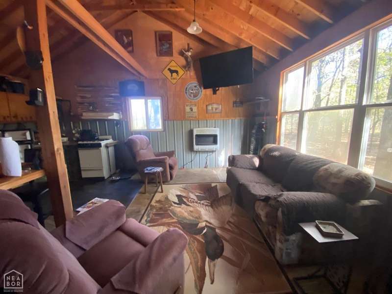 66.95 acres of hunting land with a cabin. Easement front and back. The property offers 3 deer blinds and one ladder stand. There is also a duck blind on one of the two ponds. One of the ponds is spring fed all year long and stocked with bass, crappie and bluegill. The cabin on the property has four built-in bunk beds, coal stove and a full bath. The current owner brings generator when hunting, water storage tank for water cabin has a tankless water heater. The cabin is wired so you can watch movies and have lighting from generator hookups.