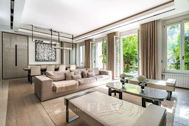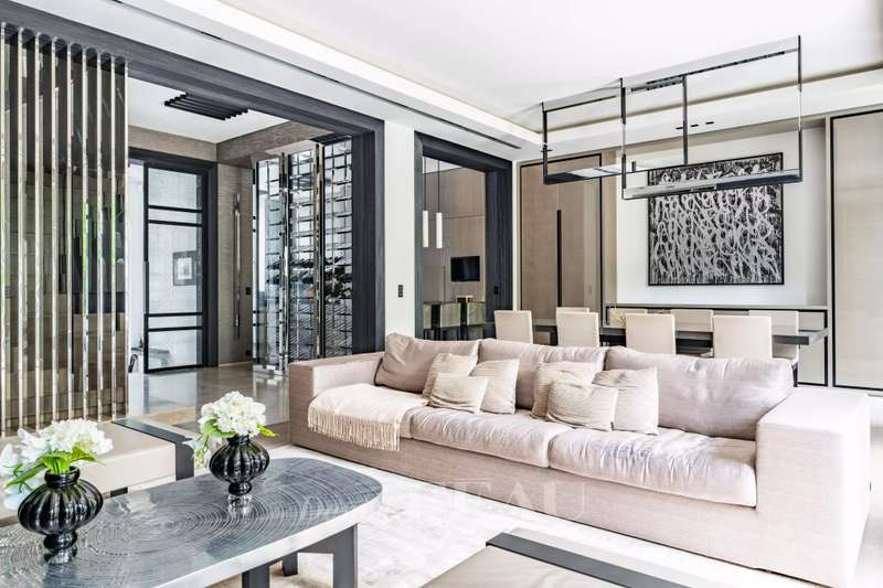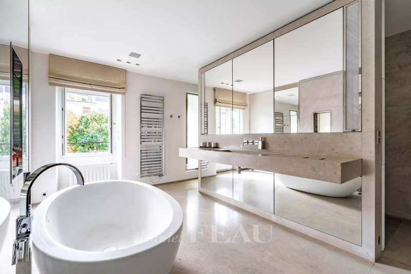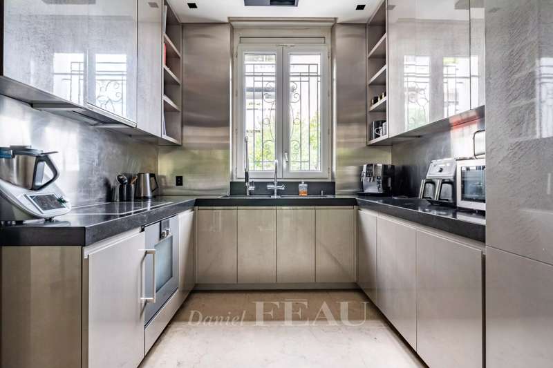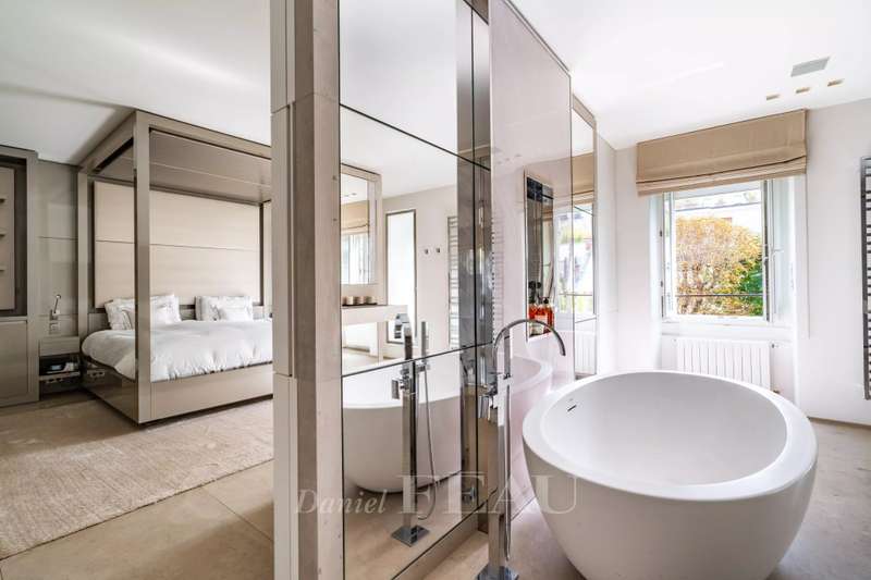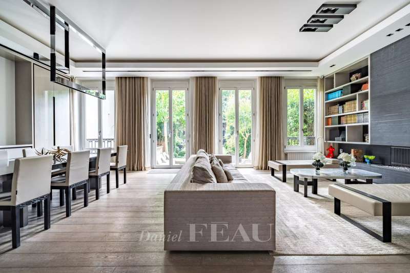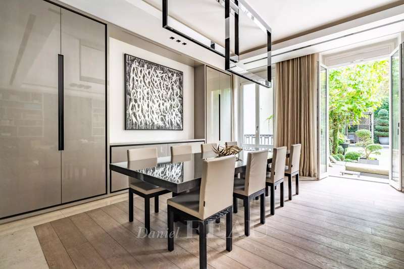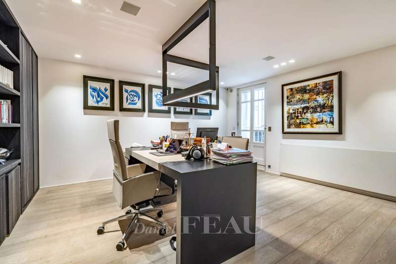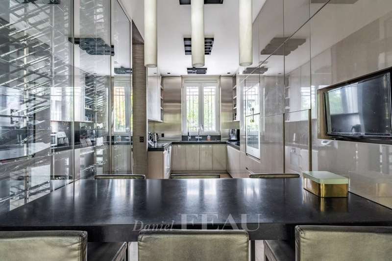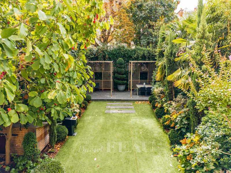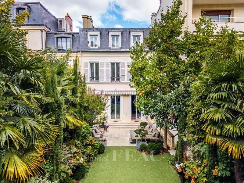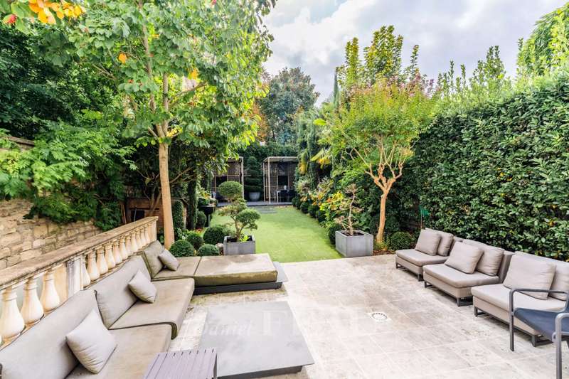 This superb late 19th century offering 460 sqm of beautifully decorated living space is located a stone’s throw from the Bois de Boulogne, the town centre and the shops. It includes a spacious living/reception room and a spacious kitchen opening onto a terrace and a peaceful south-facing garden, with three bedrooms (two with shower rooms) and a bathroom upstairs. The top floor comprises a spacious suite, a dressing room and a fifth bedroom. On a half-basement with a recreation room, a study accessing the garden, and a large utility room. With two lock-up garages in the opposite building.