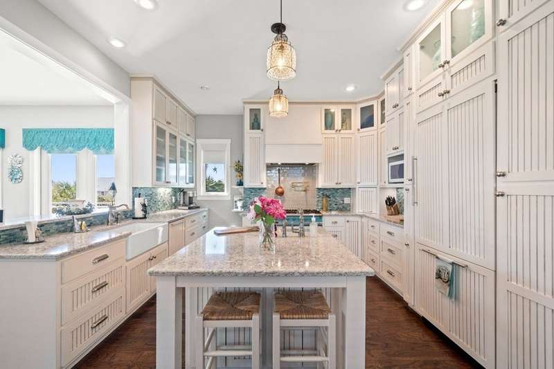 Nestled in the serene community of Money Bayou, this exquisitely crafted Gulf-view home offers the perfect blend of coastal elegance and enduring construction. Purposefully built to withstand hurricanes, the home has remained untouched by storms—thanks to top-tier materials and expert craftsmanship. Fully furnished and move-in ready, this first-tier beauty is a true standout with hand-rubbed elm hardwood floors, high-end luxury appliances, and an elevator for effortless access to all levels. The custom-designed metal stairwell railing, inspired by the sea life of St. Joe Bay, adds a one-of-a-kind artistic touch. The spacious master suite is a peaceful retreat with panoramic Gulf views from every window, a private wet bar with wine fridge, and a marble bath.. Outside, enjoy a professionally landscaped and fully fenced backyard—perfect for pets and relaxed outdoor living. Whether you're looking for a forever home or a luxury beachside getaway, this property offers exceptional quality, breathtaking views, and timeless style.