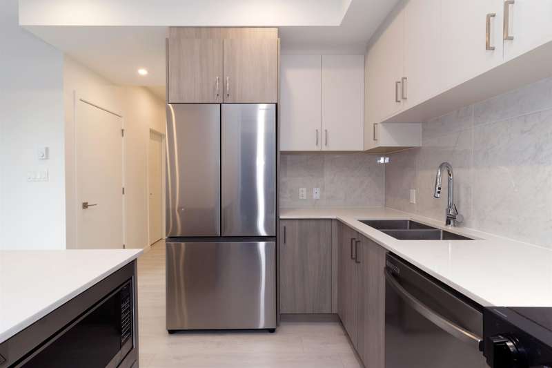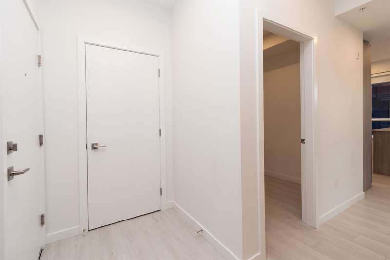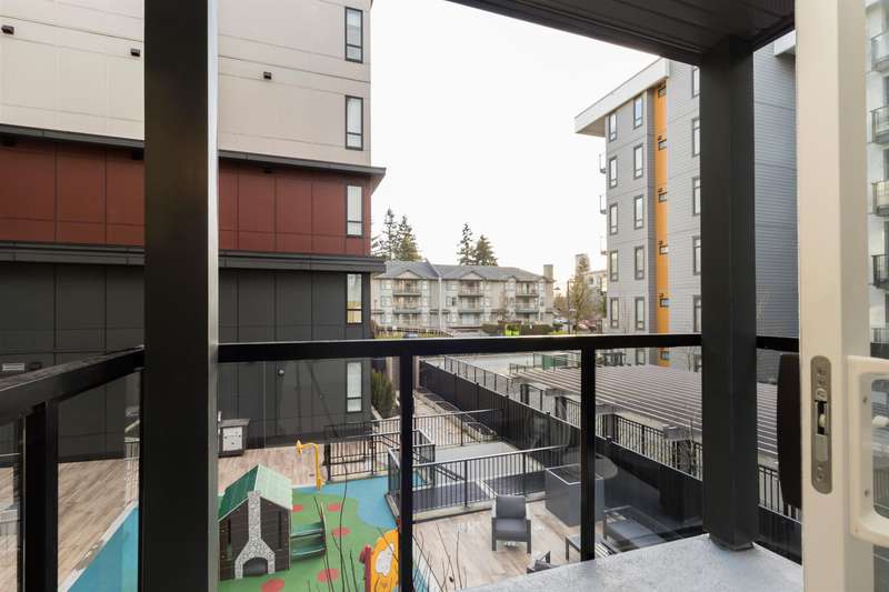 Welcome to Radley, 6 level condo development by West Fraser. This charming home offers 2 BEDROOM & 1 DEN, an open floor plan featuring a LARGE QUARTZ COUNTERTOPS, Samsung SS appliances, including an ICE MAKER FRIDGE. Laminate flooring throughout, West-facing covered deck, primary bedroom spacious walk-in closets, bedrooms CUSTOM-BUILT CLOSETS ORGANIZER, soft-close drawer, baseboard heating. With in-suite laundry, 1 parking spot, and 1 storage unit, convenience is at your fingertips. Just steps from the bus stop, Surrey Central SkyTrain, and SFU Surrey campus, everything you need is close by. The building offers fantastic amenities, including a fully-equipped BBQ area, lounge seating, entertainment rooms, a fireside lounge with kitchen, fitness center, and yoga studio.