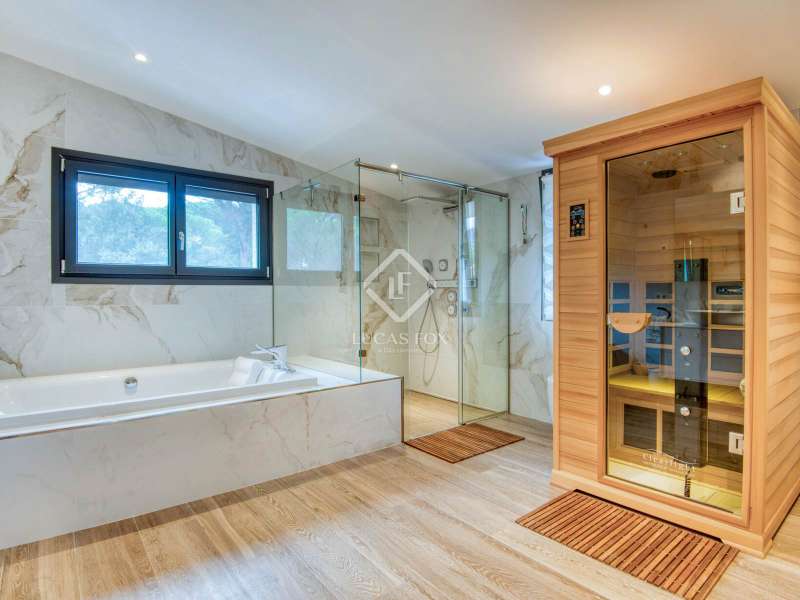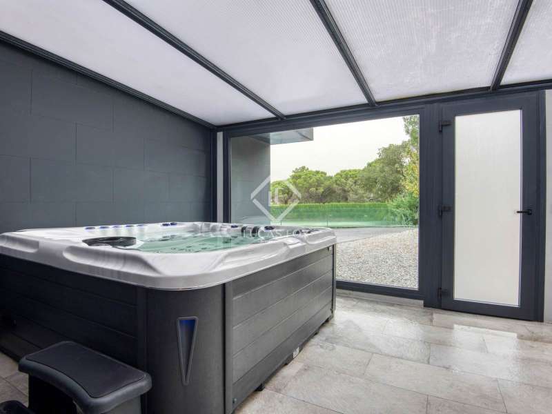 This extraordinary modern luxury villa offers an exclusive lifestyle in an enclave of absolute privacy, surrounded by nature and with professional-level facilities that make it a unique property on the Costa Brava. The property sits on a large, fully landscaped plot and immediately stands out for its contemporary architectural design, spacious outdoor areas, and exceptional quality finishes. Its orientation and elevated position ensure natural light throughout the day and complete privacy from neighboring properties. Exterior, the villa boasts a spectacular, large, heated private swimming pool, equipped with a telescopic cover that allows for year-round use. The terrace area surrounding the pool offers multiple relaxation and sunbathing areas , perfect for enjoying the Mediterranean climate. The plot also includes an impressive, professional-grade tennis court, meticulously maintained and surrounded by nature, ideal for both demanding players and those who simply want to practice their sport at home in complete comfort. The villa 's interiors are designed with top-of-the-line materials, combining luxury, comfort, and advanced technology. The spaces are spacious and bright, with large bedrooms, several of which are en suite and offer unobstructed views of the surrounding landscape. The main living area opens onto the terrace through large windows, creating a seamless transition between indoors and exterior. The villa also houses a sophisticated wellness area equipped with a full spa, including a hammam sauna, dry sauna, fully equipped gym and massage room, a true private haven of well-being without needing to leave home. The property boasts excellent features: an integrated climate control system, optimized energy efficiency through solar panels, high-performance carpentry, superior quality flooring, and state-of-the-art security systems, among other details that reinforce the exclusive character of the property. Overall, this villa represents a truly exceptional luxury home, designed for those seeking privacy, comfort, professional sports facilities, and impeccable contemporary design. An outstanding property in every sense, and a rare find in the area.