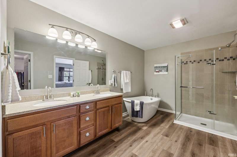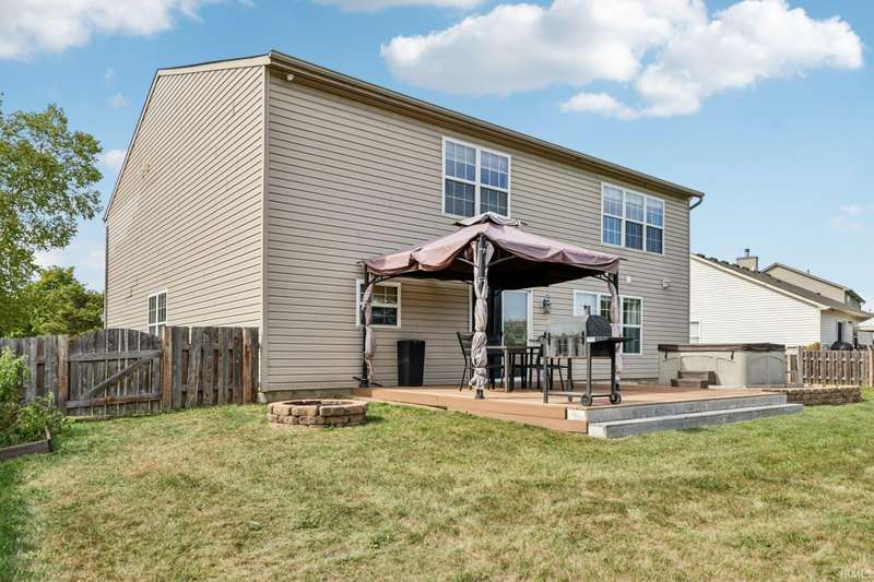 Step into this spacious and beautifully designed 5-bedroom home that perfectly blends comfort, flexibility, and modern living. Located in one of Noblesville's most desirable neighborhoods, this home offers an open-concept layout on the main floor, perfect for everyday living and entertaining. The main level also features vinyl plank flooring, a formal living room, a separate dining room, and an open kitchen with granite countertops and a large island-ideal for gatherings and home-cooked meals. Upstairs, you'll find five generously sized bedrooms, a mini-loft, and a wide hallway that enhances the feeling of space and flow. Owners bedroom has French doors, large closet, walk in glass shower and separate independent soaking tub. Step outside to your private backyard retreat complete with a deck, gazebo, and separate hot tub area-all overlooking a serene, sloping yard that backs up to a peaceful pond. Whether you're hosting guests or enjoying a quiet evening at home, this outdoor space offers the perfect escape.