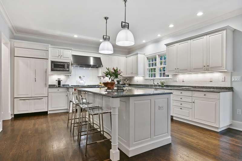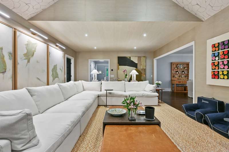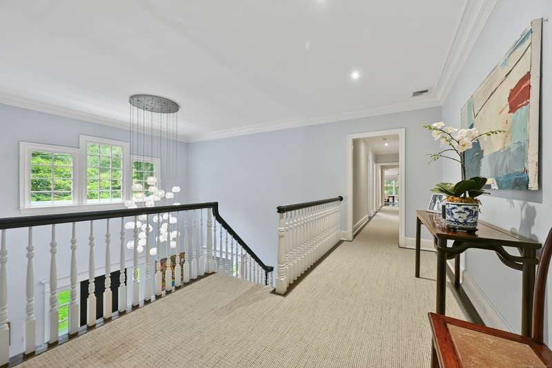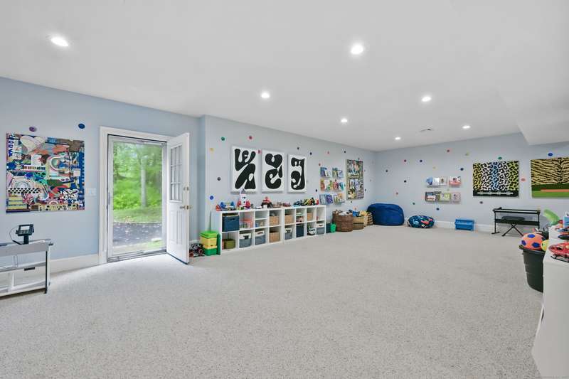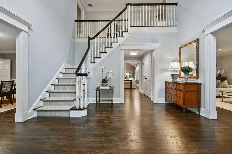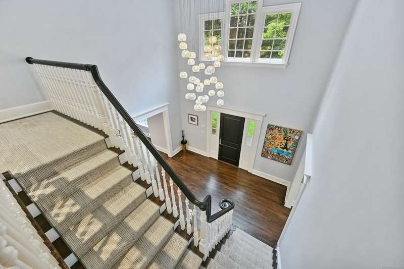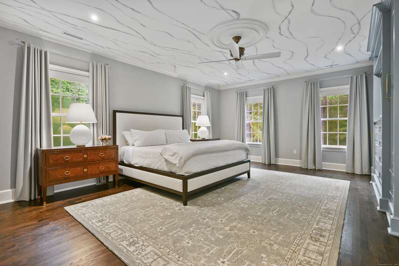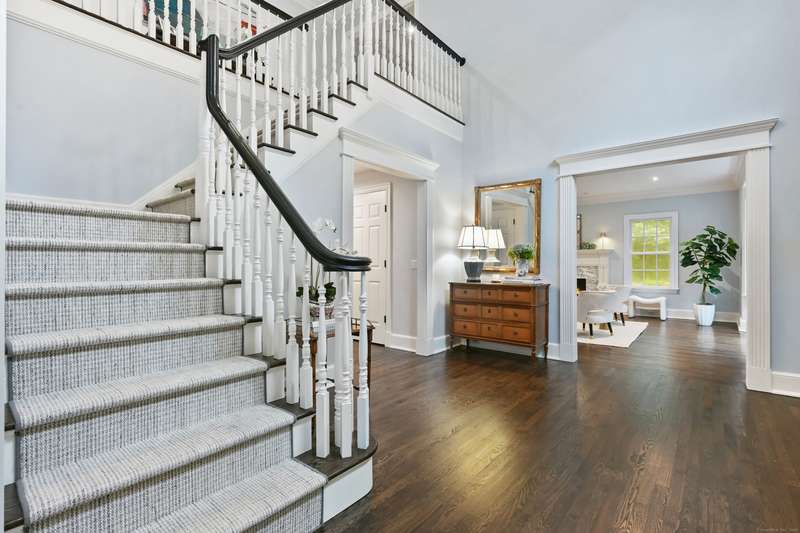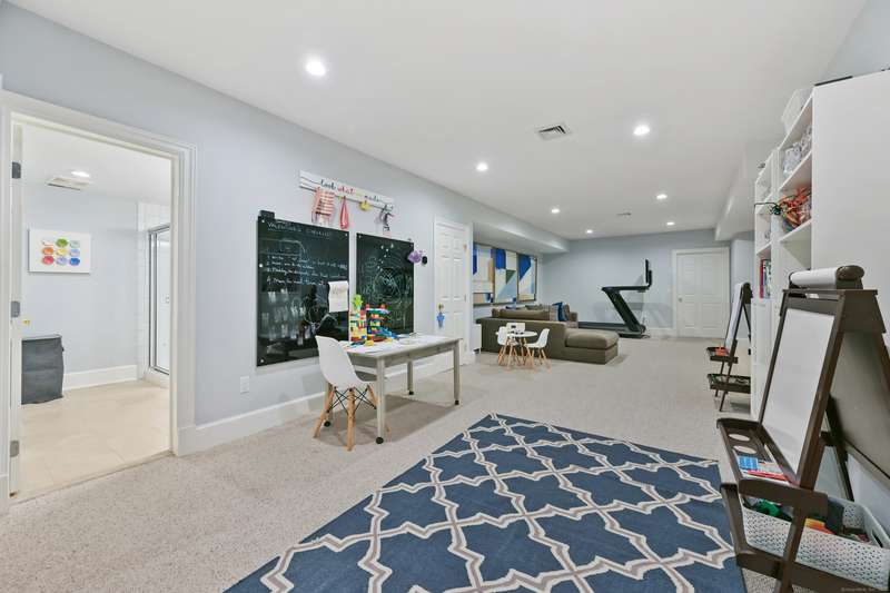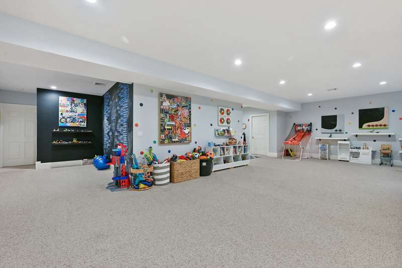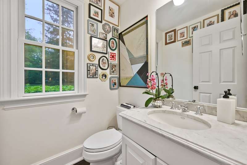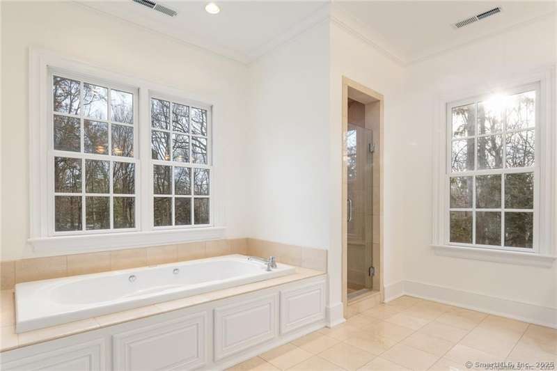 Perfectly situated on over two flat, beautifully usable acres, this exceptional 5 bedroom, 4 full/2 half bath home offers nearly 8,000 square feet of living space across four full levels. Located just minutes from top-rated schools, shopping, and the vibrant town center, this property combines unmatched space, convenience, and flexibility. Inside, soaring 9-foot-plus ceilings throughout create an open, airy feel, while large windows flood the home with natural light. The main living areas are generously proportioned, offering both comfort and elegance with seamless flow for everyday living and entertaining. Many recent upgrades include custom built-ins in both the private home office and the primary suite, adding tailored functionality and design. The fully finished, walk-out basement with 8.5 ft ceilings spans approximately 1,400 sf with full bath and features its own private driveway entrance - ideal for guests, extended family, or potential separate living quarters. Upstairs, a
