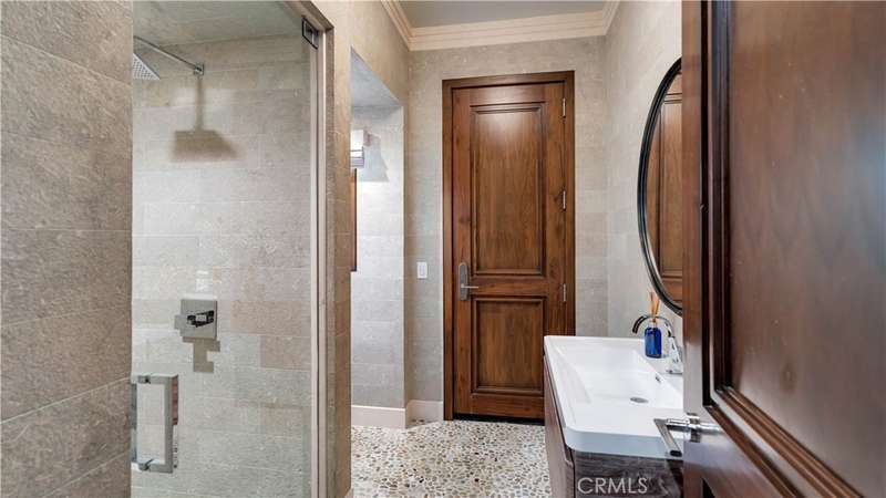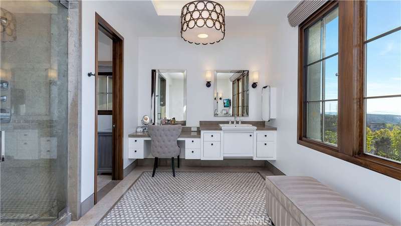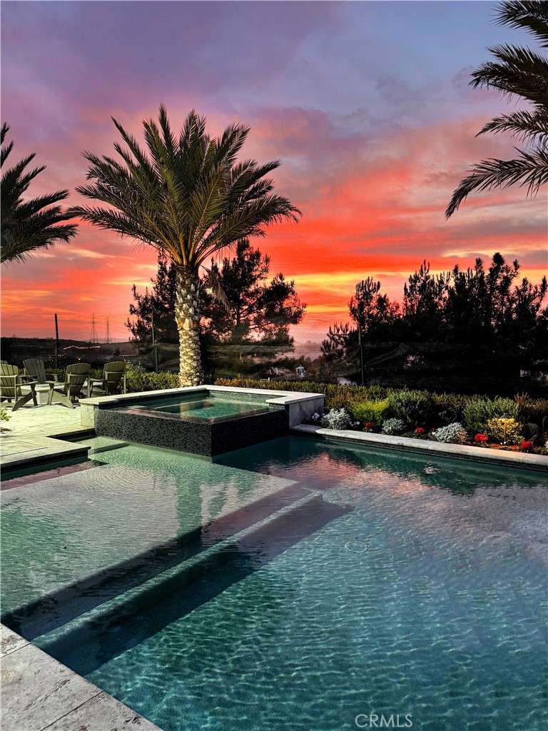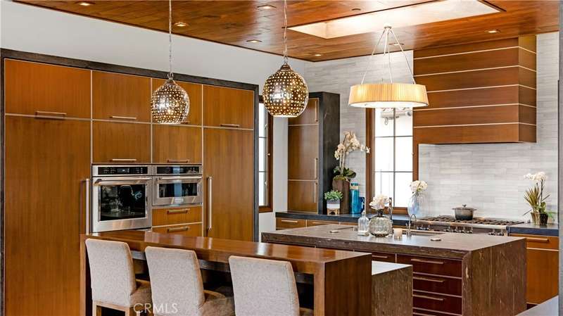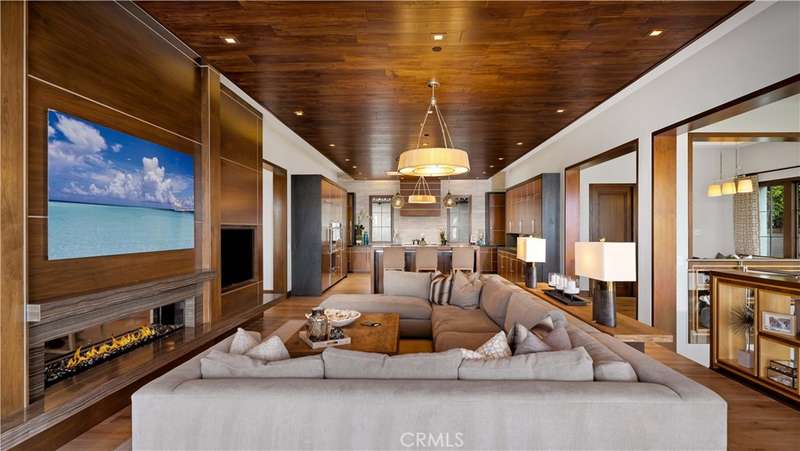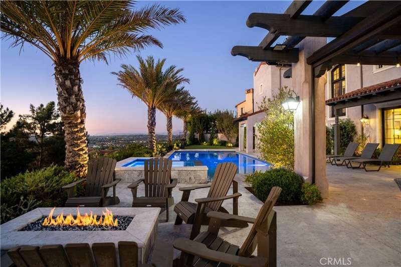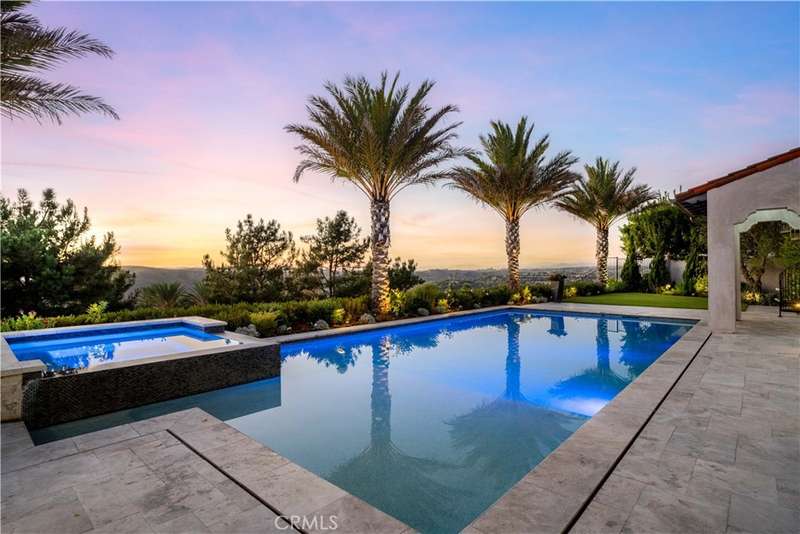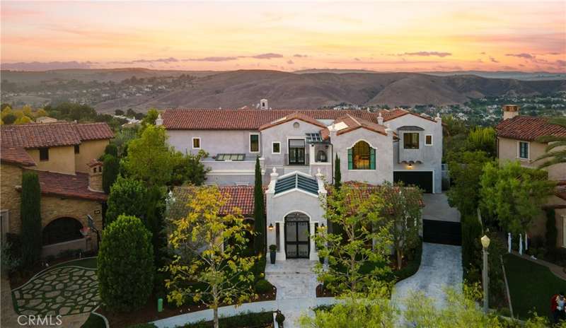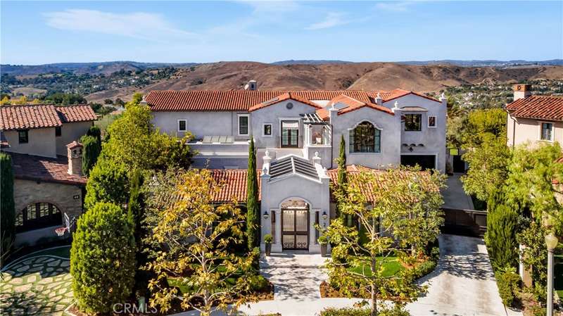 Experience the Epitome of Luxury Living with panoramic views from the mountains to the sea! Welcome to 2 Thomas Rd, a breathtaking custom-built estate offering approx. 7,476 sq. ft. of refined living. With more than $2,000,000 in curated upgrades, this home embodies the pinnacle of California luxury, design, and comfort. Inside, Mediterranean-inspired wire-brushed hardwood floors pair with rich walnut wood ceilings, cabinetry, and accents, creating an inviting yet sophisticated organic modern style. The chef's kitchen showcases dual oversized islands, soft-close cabinetry, weathered marble counters, a Sub-Zero double refrigerator/freezer, Viking 8-burner range with double oven, microwave, skylight, and a sunlit breakfast nook with wood coffered ceiling. The great room impresses with a walnut ceiling, designer fireplace, and expansive glass sliders that open to an entertainer's paradise. The outdoor sanctuary features a saltwater pool and spa, outdoor kitchen, bluestone travertine decking, and a hidden automated TV, ideal for resort-style living. On the lower level, enjoy a full media/game room, fitness room, secondary kitchen, and private basketball half-court designed for recreation and entertaining. The primary suite is a serene retreat with a custom fireplace, motorized sunset shades, dual walk-in closets, and a spa-worthy bath with steam shower, rain shower, and dual vanities. Additional features include a dedicated office (or 6th bedroom), upstairs loft, craft/home management room, 4-car garage with custom storage, solar panels, and full Crestron & iAquaLink smart home automation for lighting, climate, pool, and security, all controlled from your phone or tablet. This rare offering may also be sold partially furnished, presenting a truly move-in-ready experience. Located in Ladera Ranch, residents enjoy award-winning schools, resort pools, clubhouses, parks, hiking/biking trails, shopping, dining, and family-friendly amenities. A rare opportunity for luxury, lifestyle, and convenience in one of SoCal's most coveted communities!