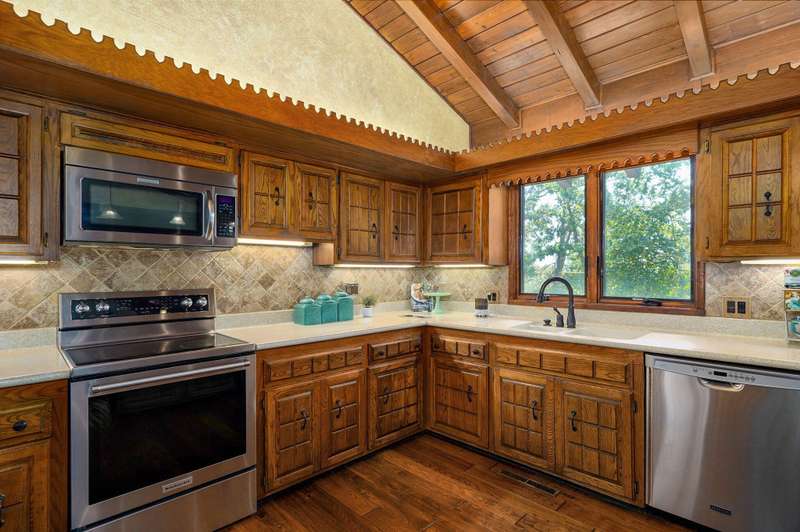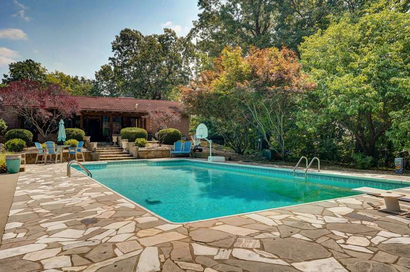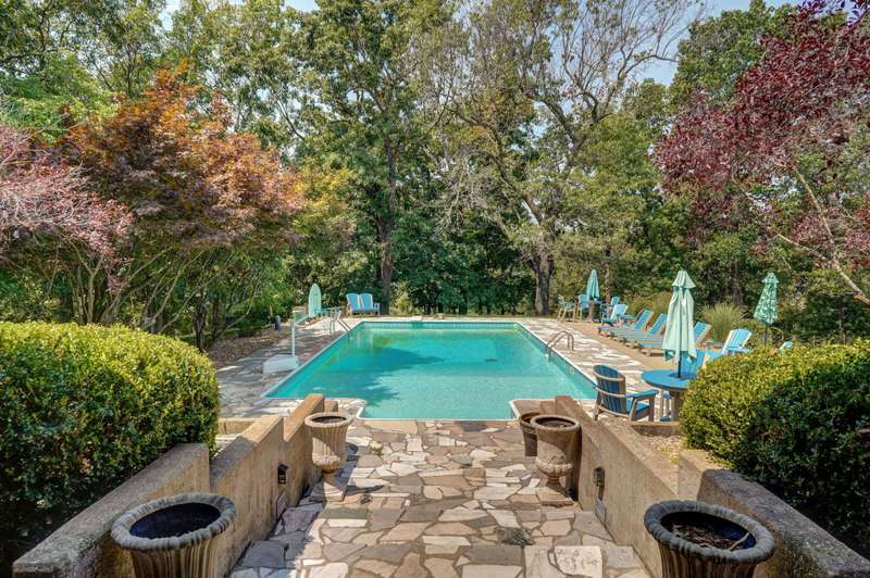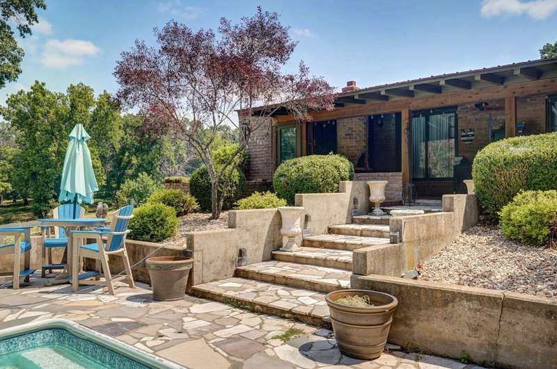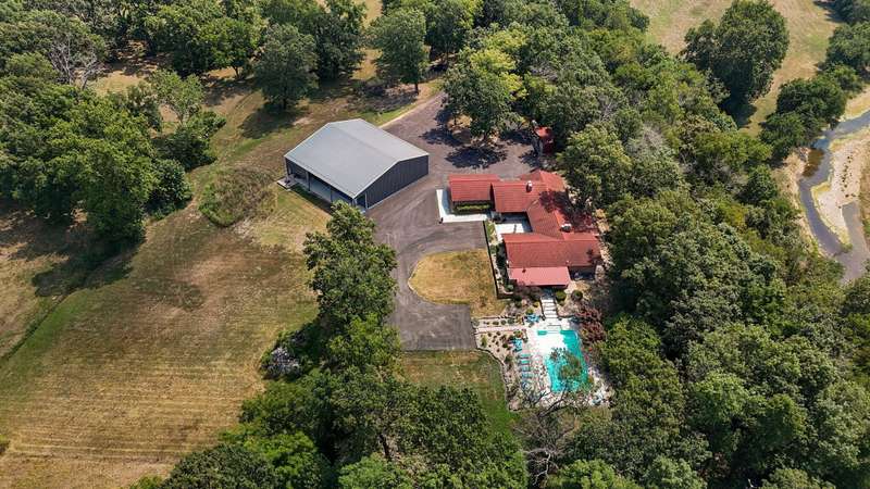 Behind a private gated entry, a long tree-lined drive leads to this distinguished residence a rare bluff-top retreat that has been held in the same family since 1975. Set on 10 acres, the property combines enduring elegance with modern comforts, offering both privacy and sophistication.The home's architecture is rich in character, with warm brickwork, graceful lines, and thoughtful details throughout. Expansive windows frame serene views of the surrounding landscape, while multiple outdoor living spaces invite seamless entertaining.At the heart of the estate lies a resort-style pool, surrounded by stone terraces, manicured gardens, and shaded lounge areas a perfect backdrop for gatherings or quiet relaxation.For those who appreciate versatility, the property includes a substantial heated and cooled shop, ideal for car collectors, creative pursuits, sports enthusiast, or executive-level storage.Perched above Williams Creek, this estate offers an unmatched combination of natural beauty, history, and refined living. An extraordinary opportunity to own a legacy property in an exceptional location.