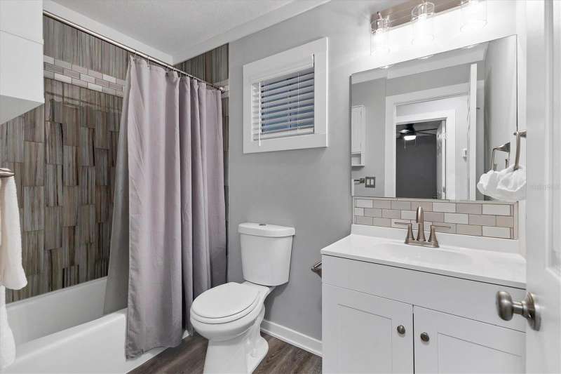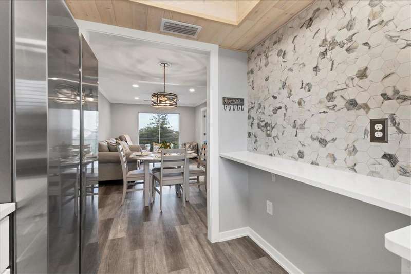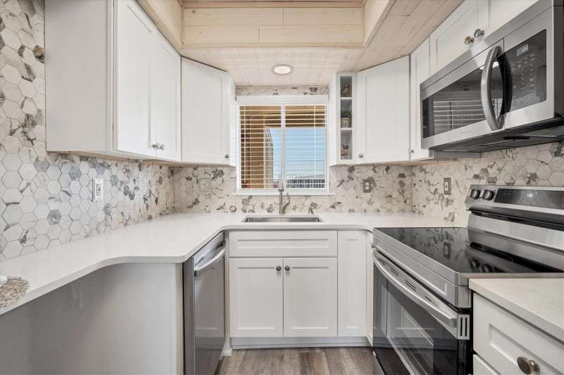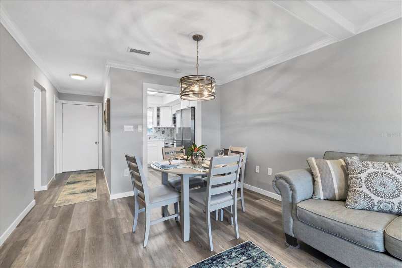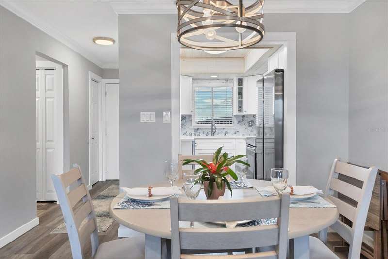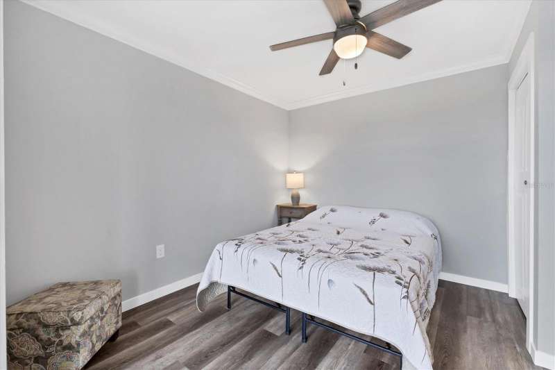Welcome to your Florida retreat at Bayshore on the Lake! This completely renovated and furnished 1-bedroom, 1-bath condo with a bonus study/den is truly move-in ready—no updates needed. Inside, the heart of the condo is the gourmet kitchen, featuring new shaker-style cabinets, sleek quartz countertops, stainless steel appliances, and charming shiplap accents for that coastal feel. The open layout flows into a spacious living area with luxury vinyl plank flooring and crown molding, creating a light and airy atmosphere. The bonus study/den adds flexibility—perfect as a home office, hobby space, or a cozy spot for overnight guests. The updated bathroom, modern lighting, and quiet underlayment throughout ensure comfort and style in every detail. Step onto your newly screened lanai with a custom-finished floor, ideal for morning coffee or evening relaxation. Added bonus: washer/dryer hook-up right on the lanai for ultimate convenience. Located in a welcoming 55+ community with a heated pool, clubhouse, fishing pier, and lakeside walking paths, this home offers the perfect blend of relaxation and lifestyle. With easy access to shopping, dining, and local beaches, this condo is the complete package—ready for you to enjoy from day one.