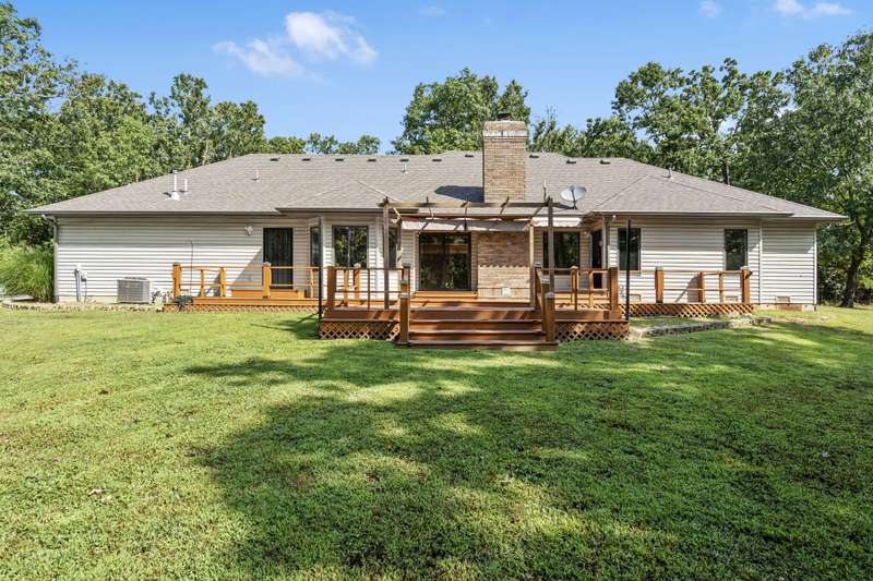 Welcome to 4660 E Red Oak Lane - a serene country retreat just minutes from Springfield. This charming 3-bedroom, 2-bath home offers 1,987 sq ft of comfortable living space on 5 private acres at the end of a quiet dead-end street. A long gravel driveway winds through the property, giving you a sense of arrival and total privacy. Built in 1996, it perfectly blends peaceful country living with quick access to the I-44/US-65 interchange.Step inside and feel instantly at home. Sunlight streams through tinted windows, highlighting the brick fireplace in the main living area--perfect for cozy nights or gathering with family. Tray ceilings add elegance, while recently installed new carpet in the primary bedroom and spare room makes the space feel fresh and inviting. The brick-face vinyl siding gives charm and low-maintenance appeal.Imagine summer evenings on the back deck, grilling and entertaining while enjoying the sounds of nature. Inside or out, there's plenty of space for hobbies and storage with three electric sheds, a spa tub with a recently replaced motor, and modern comforts like park lights, security doors, a whole-house generator, and a 4-year-old roof.Whether you're sipping coffee at sunrise on the deck, relaxing by the fireplace on a cool evening, or enjoying the peace of your private acreage, this home offers the perfect blend of country tranquility and city convenience.