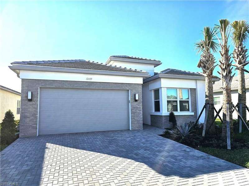 Exquisite 2024-built home with southern exposure and desirable privacy! This stunning and spacious 3-bedroom plus den, 3-bathroom home is perfectly positioned on one of the most desirable lots at Valencia Trails, offering serene views of the lake and preserve for added privacy. The southern exposure ensures you'll enjoy sunshine throughout the day, while the extra-extended lanai provides the perfect space to relax and soak in the breathtaking scenery. For the culinary enthusiast, the designer-inspired kitchen is equipped with natural gas and boasts an oversized island with seating that opens seamlessly to the living area. This layout creates an inviting space for entertaining while offering beautiful views of the private yard, lake, and preserve. Located in the highly sought-after gated community of Valencia Trails, this home offers the ultimate Florida lifestyle. Enjoy world-class amenities, including a 43,000 sq. ft. clubhouse, a 10.7-acre recreation complex, and miles of scenic walking trails. Whether you're swimming, playing pickleball, meeting friends for lunch, joining a poker game, or attending a Broadway-style show, Valencia Trails offers endless opportunities to live your dream life!