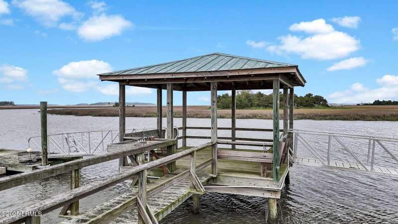 Modern LowCountry Design - 3 Bedroom, 3 1/2 Bath Home on True Deep Water This beautifully designed home captures the essence of Modern LowCountry living, offering an unparalleled combination of luxury, comfort, and natural beauty. This beautiful home boasts unobstructed, long-range views of the stunning ACE Basin, Morgan and Coosaw Rivers, Coffin Creek, Morgan Island, and St. Helena Sound. You can enjoy direct access to the waterways for boating, fishing, and peaceful relaxation. Spacious Living & Thoughtful Design: The open concept living space is perfect for modern living and entertaining. The spacious layout flows seamlessly, with breathtaking views visible from almost every room. The main floor features the expansive primary suite, designed for maximum comfort and convenience. Ceiling fans are thoughtfully placed in all bedrooms and most living spaces to enhance the home's natural airflow. Gourmet Kitchen & Custom Features: The heart of the home is the custom kitchen, designed by Pat Betz at Distinctive Designs in Cabinetry, LLC. The kitchen features huge chef-ready sinks, luxurious quartzite surfaces, and an exquisite design that includes the island, backsplash, bar counter, and guest bathroom. New KitchenAid appliances, including a dishwasher, refrigerator/freezer with ice maker, microwave, gas stove, electric oven, washer, dryer, and a wine/beverage cooler, ensure you have everything you need for both everyday living and gourmet cooking. Superior Outdoor & Waterfront Living: Step outside to your shared private dock, covered and supported by extended-height pilings, with a new float and drive-on lift, providing easy access to the water. The fenced-in backyard offers a secure space for pets and outdoor enjoyment. The garage, a massive 2-bay space with auto openers, provides ample storage and easy access to the home's elevator. Smart & Efficient Features: This home is equipped with a host of modern systems designed to offer both convenience and peace of mind. The elevator, installed by Elevator Lift Systems, ensures easy entry from the sheltered garage, perfect for unloading out of the weather. A new underground 500-gallon gas tank powers not only the gas stove but also a Generac instant-on generator, ensuring the main living space stays powered during emergencies. A tankless water heater provides unlimited hot water, and the gas logs offer a uniquely realistic fire experience. Updated & Protected: The home underwent significant renovations and updates from 2019 to 2025, including two new HVAC systems, hurricane protection, and spray foam insulation for energy efficiency. A new architectural shingle roof was installed in 2023, ensuring long-term durability. With thoughtful design, custom details, and modern updates, this home offers an exceptional living experience in the heart of LowCountry, blending elegance with the natural beauty of the coastal environment.This material is based upon information, which we consider reliable, butThis material is based upon information, which we consider reliable, but because it has been supplied by third parties, we cannot represent that it is accurate or complete, and it should not be relied upon as such.