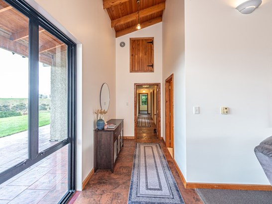 Welcome to your dream lifestyle property – a large 257 m2 (approx), well-appointed family home set on 9.66 hectares (approx) of versatile land, combining comfort, space and breathtaking views. This generously sized home features four double bedrooms, including a luxurious master suite with a large walk-in wardrobe and en suite. A spacious family bathroom with wet floor shower and spa bath caters easily to the needs of a growing family. The heart of the home is an open-plan kitchen and dining area, perfect for entertaining or relaxed family living. Flowing seamlessly from here, the large high ceiling living room gives a grandness to the room with large windows to capture that view, while a separate family room provides additional space for relaxation or activities. Step outside and discover the full potential of this exceptional property. The northern side offers a small amount of good flat land, while the southern side boasts medium to easy country with pockets of native bush – all framed by stunning southern vistas stretching out to the coast. Privacy is assured, with ample room for all your outdoor ambitions. For the adventurous, a motor cross track is already established, making this the perfect haven for outdoor enthusiasts of all ages. Whether it’s motor bikes or mountain bikes, or simply just soaking in the views, this property delivers privacy, space and opportunity.