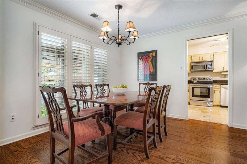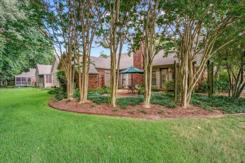 Welcome to effortless living in this beautifully updated 3-bedroom, 2-bath home, perfectly situated on a quiet cul-de-sac in one of Germantown's most desirable maintenance-free communities. This single-story residence offers both comfort and convenience in a serene, natural setting. Step inside to find elegant wood flooring throughout the main living areas, high-end carpet in the bedrooms, and tastefully updated bathroom vanities. The spacious primary suite features a generous walk-in closet, while the second bedroom impresses with soaring vaulted ceilings and a custom built-in bookshelf ? ideal for a home office or library. A third bedroom offers its own attached bath, which also opens to the hallway for seamless guest access. Outdoors, a private patio shaded by mature crepe myrtle trees overlooks a lush, HOA-maintained green lawn and peaceful wooded backdrop where deer and fox are frequent visitors. This is more than just a home?it's a lifestyle.