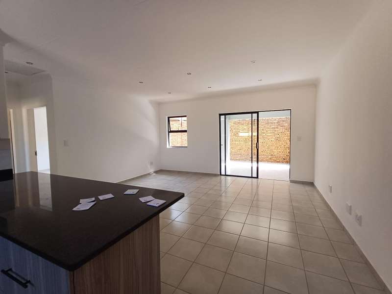 Open plan lounge and dining room leading out to covered patio and small private garden