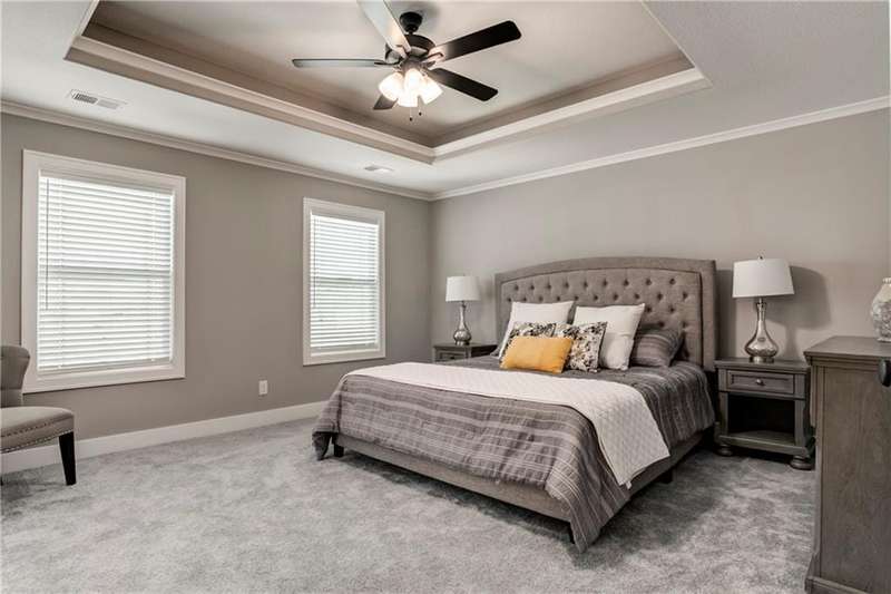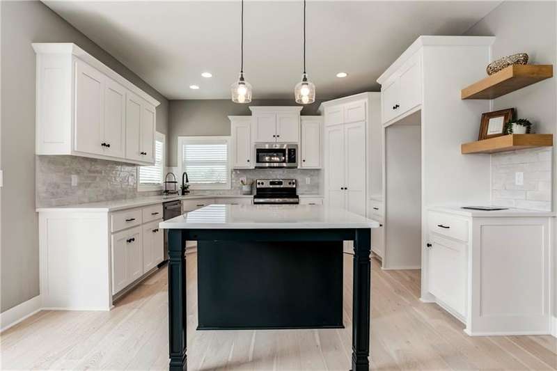 Beautiful Wesley III on an incredible lot. Daylight basement on a large pie-shaped cul-de-sac lot. Includes a composite deck with stairs to grade. The home backs to green space that includes a detention pond viewable; from the second floor and deck, and trails that connect to the area fishing lake. The kitchen includes an extended jewel-tone enameled island, a white enamel cabinet surround, and stained floating shelves for accents. Massive pantry with face-framed shelves. Matte Black plumbing faucets and door hardware. Free-standing tub, face-framed master closet shelves, color-changeable LED lighted vault in Master Bedroom, double doors to the master bath. Cordless faux wood BLINDS are included, and a 3-car garage with painted and insulated interior walls. Garage door OPENERS with a keypad are included. Sprinkler System, extended front porch, water views from the front porch and the deck. Porch is perfect for a porch swing and chairs. Upgrades included: Extensive custom trim work. Boxed stained beams in the dining room, a custom fireplace with a linear, electric, heat producing, fireplace insert with stained mantle, a trim accent wall in the stairwell with a built-in mirror, a boot bench with upper cubbies, and a built-in storage drawer, upgraded kitchen backsplash. Enjoy the subdivision playground, trails, fishing lake, fire pit, picnic shelter, trails, and HEATED pool with splash zone and slide, also includes an extended pool season (Open until temps drop to late at night). Taxes and Sq. Ft. are Estimated.