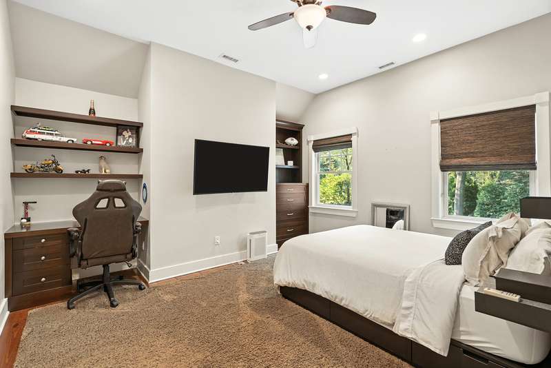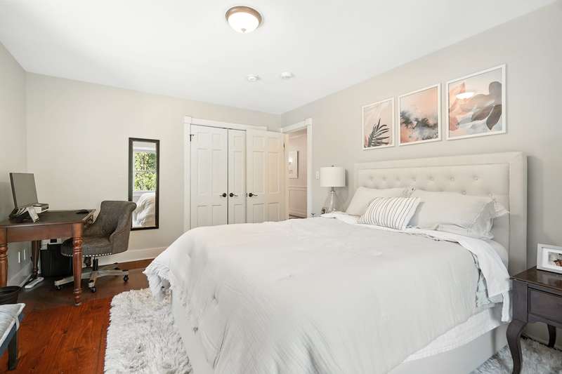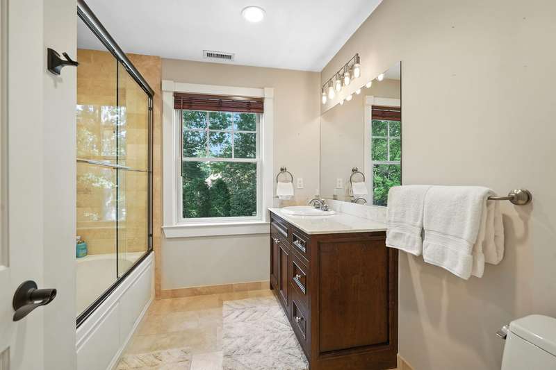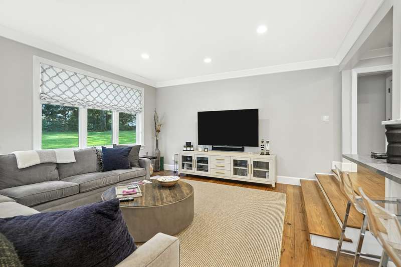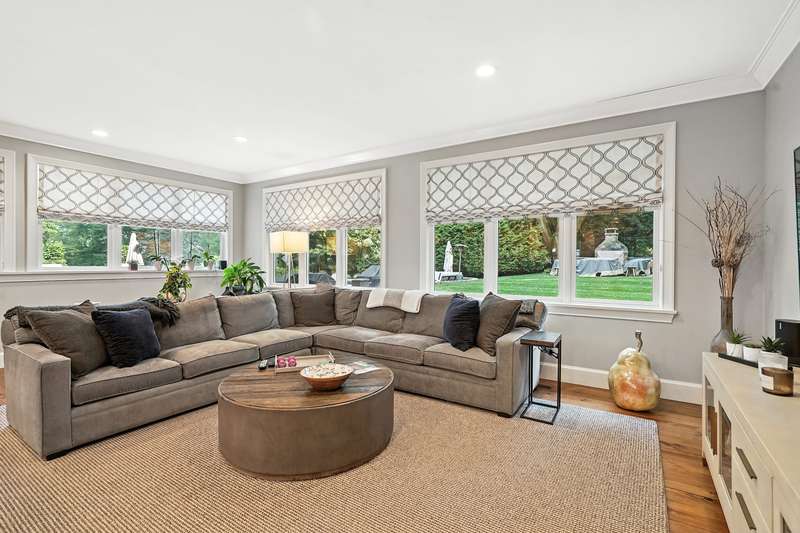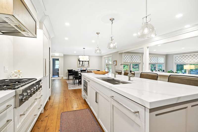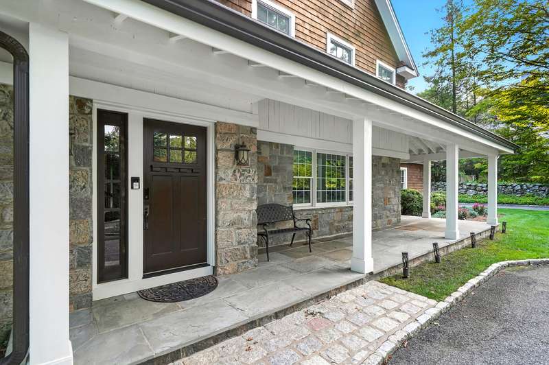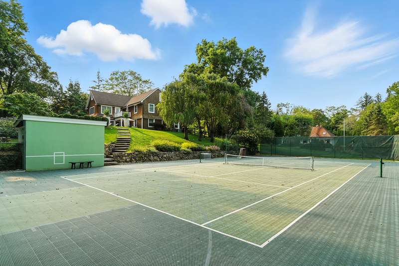 Discover the perfect getaway in this stunning shingle-style home, ideally set on 1.36 bucolic acres designed for both relaxation and entertaining. Enjoy resort-style amenities including a sparkling pool, private tennis court, outdoor fireplace with TV viewing area, multiple entertaining spaces, and lush designer landscaping offering unmatched privacy. Inside, the main level features living room: office and formal dining room, a chefs kitchen with island seating for five, top-of-the-line stainless steel appliances, a spacious pantry, and a separate bar area. A mudroom, two-car garage, and a versatile bedroom/office with a full modern bath complete the first floor. Upstairs, the primary suite offers a spa-like marble bath and walk-in closets with serene views of the property. Two additional bedrooms feature en-suite baths, while a fourth bedroom is served by a hall bath. A convenient second-floor laundry room completes this level. The finished lower level adds 1,200 square feet of living space, including a home gym and comfortable lounge area. Offered fully furnished with exquisite decor, this property is move-in ready for your private retreat. Small dogs will be considered.