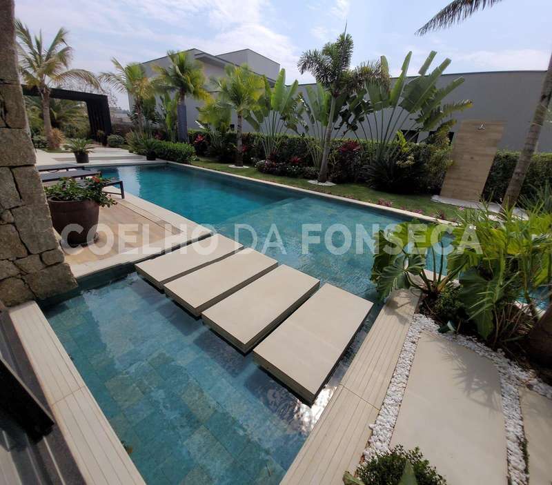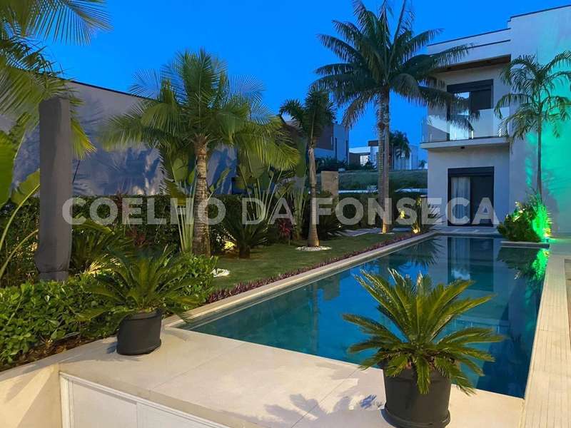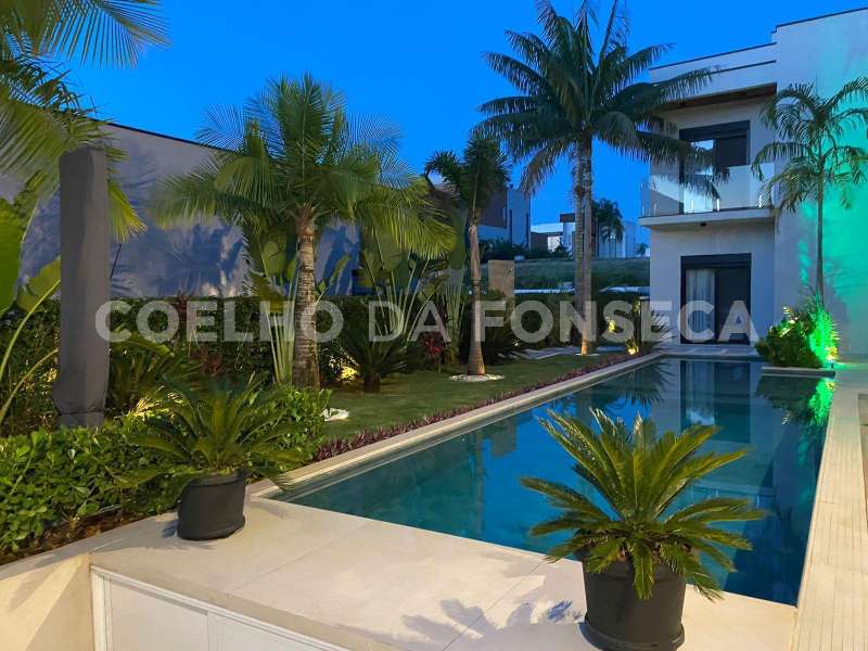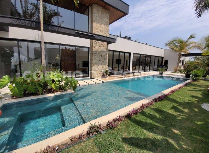 Casa em Condomínio no bairro Porto Feliz com 550m² área construída, 6 dormitório(s), 6 suíte(s), 6 vaga(s), 9 banheiro(s), piscina, aceita permuta, mobiliado (a), ar condicionado, dep. de empregados, reformado (a), varanda.