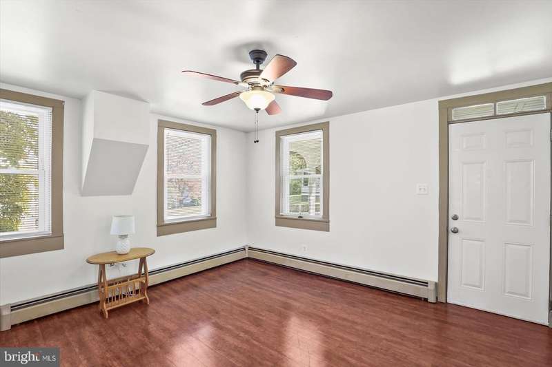 Charming Colonial on Main St. Whiteford that shows pride of ownership with several updates. The home has a full covered front porch with newer composite decking and a new architectural shingled roof. Updates include replacement windows, fresh paint throughout, new flooring in kitchen and bathroom, new hot water heater 11/24, new tub/shower and surround 10/25. Entry from the front porch offers a spacious and bright living room and formal dining room with recent Luxury Vinyl Plank flooring and plenty of windows for natural lighting. The kitchen offers you a comfortable working area for meal preparation and ample counter space. The full bathroom is conveniently located on the main level next to the stairs that take you up to the two bedrooms. In the primary bedroom is a pull down ladder access to the floored attic. The unfinished basement with a concrete floor has the laundry area with access from inside the home and a level walkout door to the back yard. You can exit the kitchen to the wraparound wood deck with two sets of stairs. The deck overlooks your 1.20 acre level lot that backs to woods and includes a shed with some of your own wooded area. Don't miss the two car wide parking pad with room for 4 + cars. This home sparkles and has been meticulously maintained by the owners.