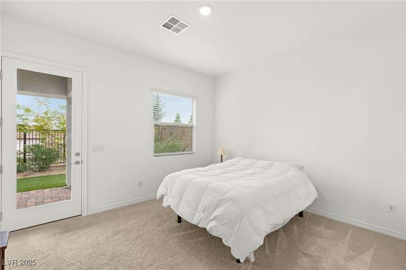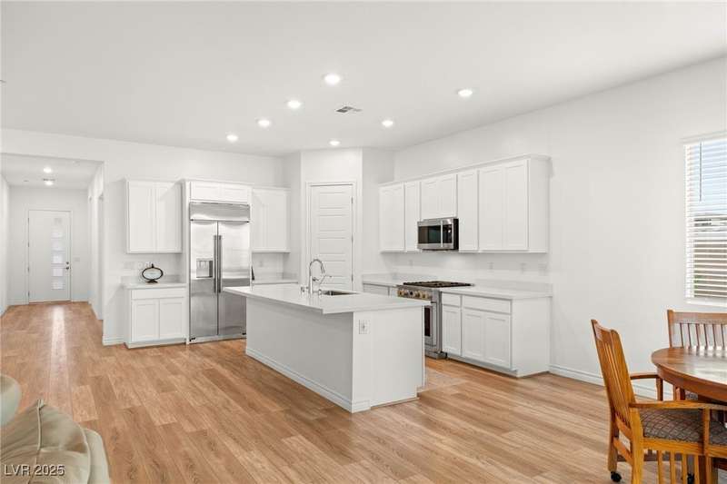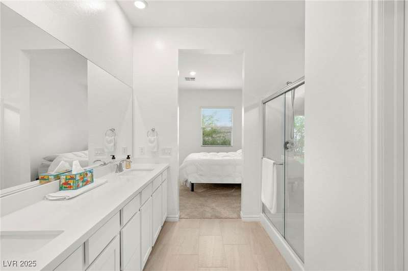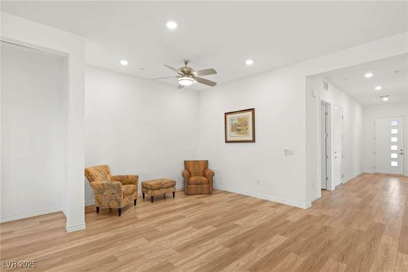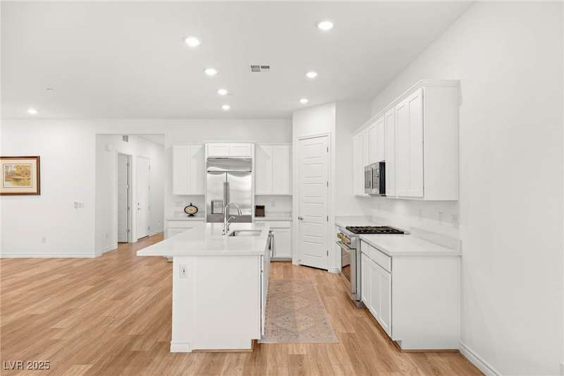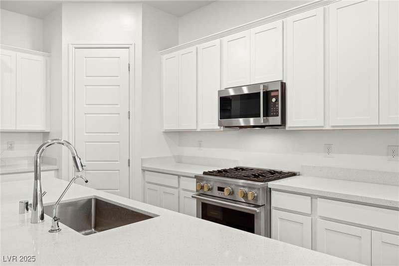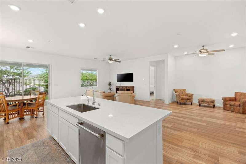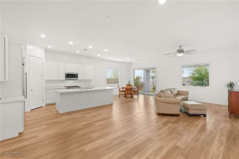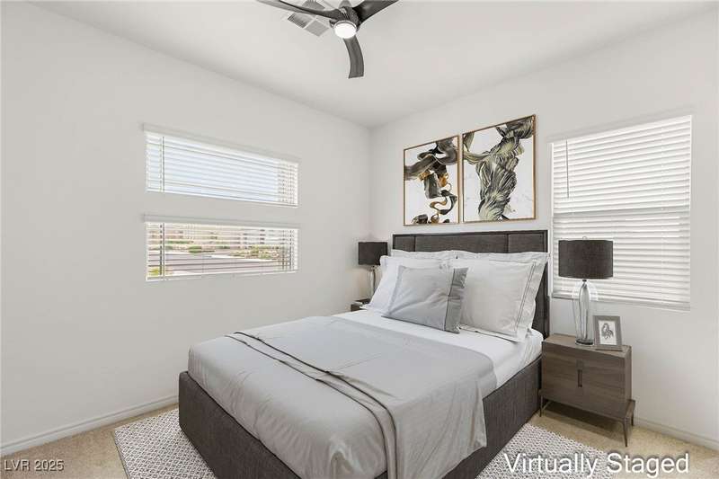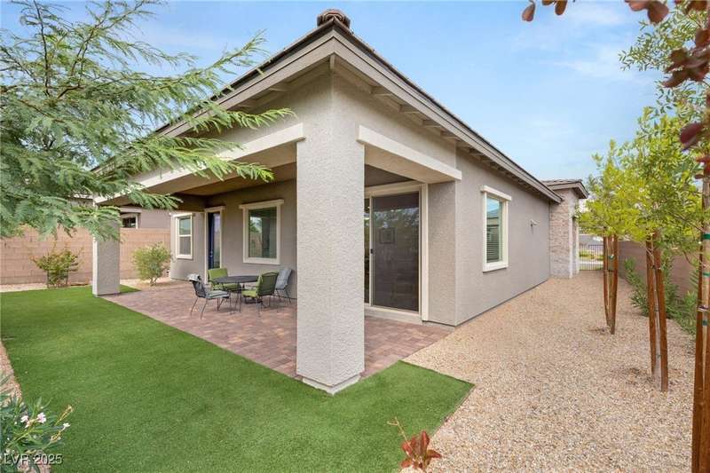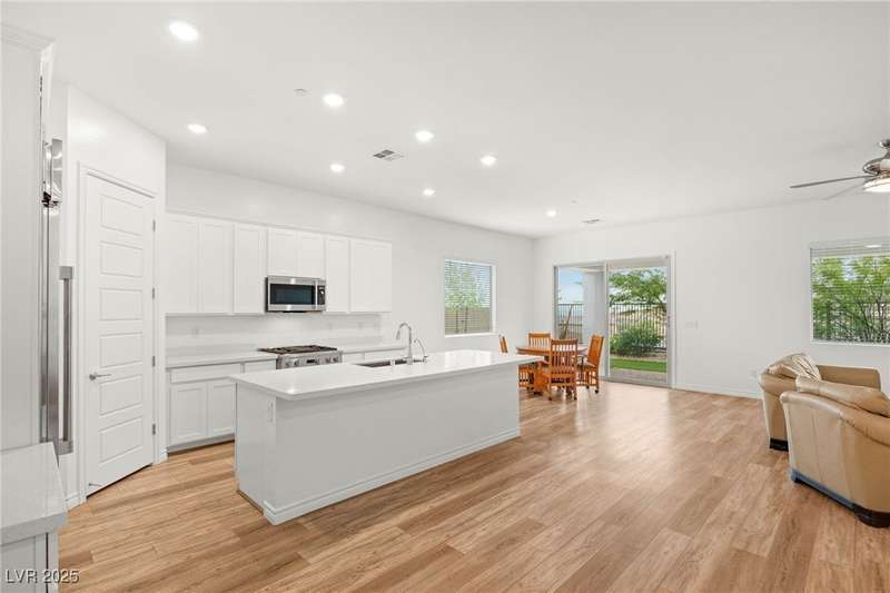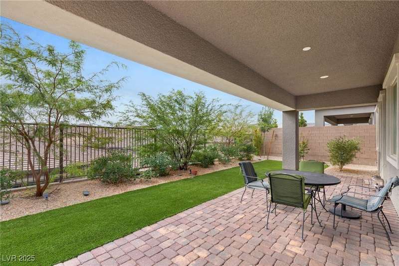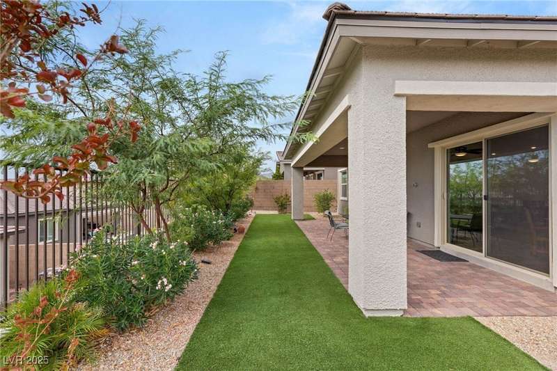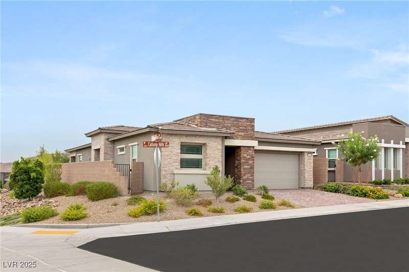 Rare opportunity to own in the incredible Guard Gated community of Heritage in Summerlin West! This corner homesite offers an abundance of privacy with stunning city sightlines! Upon entry you will love the massive open concept living w/10 ft. ceilings, low maintenance luxury plank flooring, kitchen w/slab quartz island, crisp white cabinetry, built in refrigerator and single basin sink. Primary bedroom has dual vanities, shower w/bench seat and direct access to the laundry room for convenience and overflow storage. Relax under your oversized covered loggia with mature trees and beautiful mountain/city scenery. State of the art clubhouse offers pool, spa, workout facility, event lawn, firepits and more. You are minutes from Red Rock National Park, Downtown Summerlin, Whole Foods, Shopping and 5-Diamond Resorts!