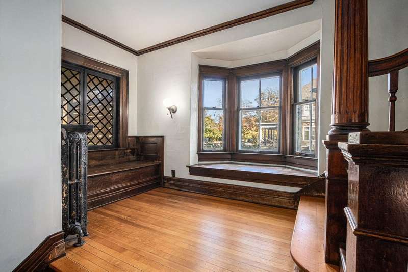 TIMELESS CHARM, MODERN COMFORT, and ROOM for EVERYONE! Step into a home that feels both classic and comforting where hand-carved details, glowing hardwood floors, and brick fireplaces create a sense of story and warmth in every room. This inviting home has been beautifully cared for and thoughtfully updated with a NEW roof, siding, fascia, and gutters (2023), a NEW water heater (2024), and a NEW boiler (2021) giving you PEACE OF MIND for years to come. The kitchen has butcher block countertops, tile floors, and stainless steel appliances, plus a convenient pantry/laundry room just steps away. Cozy up in the living room or enjoy dinner in the formal dining room gazing out the bay windows. Upstairs, youll find four large bedrooms, centered around a bright, open, and airy landing. The third-floor attic offers even more flexibility with a 5th bedroom- whether its a playroom, game room, or guest suite. This home oozes with old world charm and craftsmanship not found in newer homes.