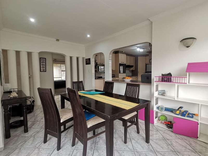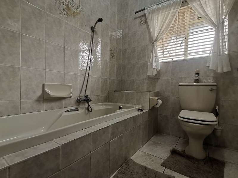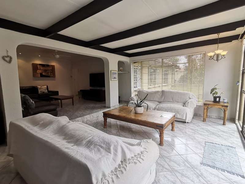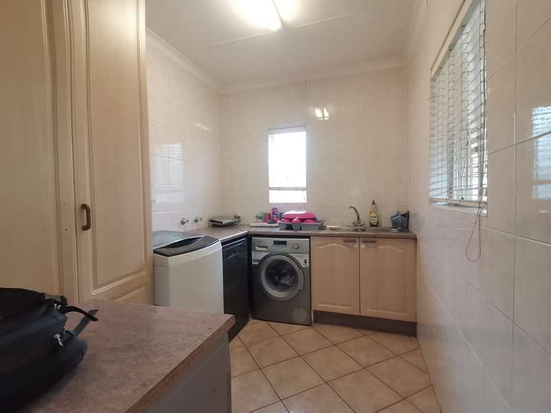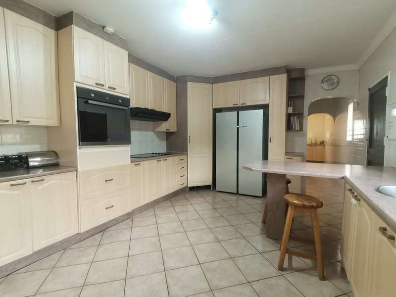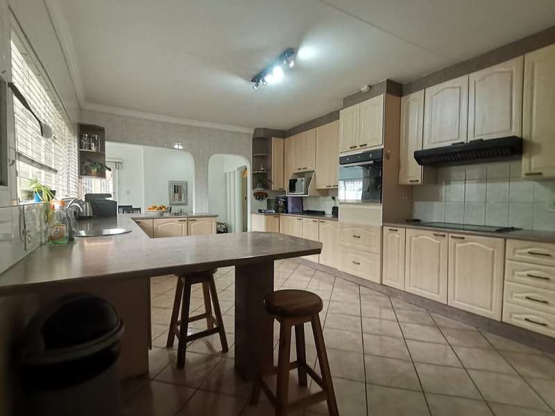 This homes welcomes you into a bright entrance hall flowing into the family lounge, dining room and the private lounge overlooking the well-established garden with a sparkling pool and a Lapa including fishpond and an entertainment area. The spacious kitchen boasts plenty cupboard space, a breakfast nook, space for all appropriate electrical appliances, and a separate laundry room. The main house features 4 spacious bedrooms with built-in cupboards with the main bedroom having an en-suite bathroom and the second bathroom serves the 3 remaining bedrooms. The flatlet with a separate gate on a different street, offers an open plan kitchen, visitor’s toilet, dining and lounge area, with 2 very spacious bedrooms with built-in cupboards and a bathroom. Also offering a carport. This home is complete with a double garage and a carport for 2 cars. Very well secured and close to schools, shopping centres, churches and so much more...