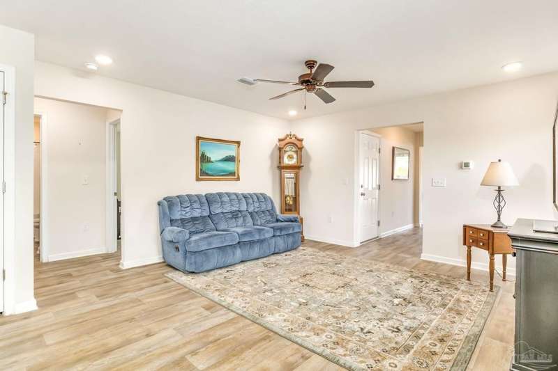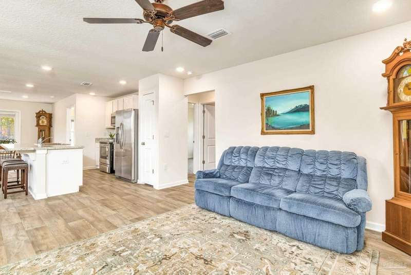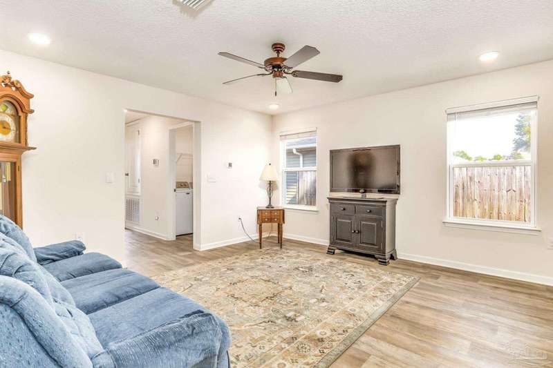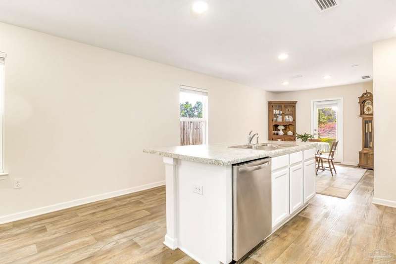 Welcome home!! This like-new cottage style home is move-in ready. Situated in a quiet cul-de-sac, the home offers peace and tranquility. Stepping inside, you are greeted with wood look LVP flooring and neutral colors. The front of the home offers a coat closet, access to the laundry room and garage. The main living space offers recessed lighting and abundant natural light. The open concept moves into the kitchen which offers an island with breakfast bar seating, pantry, and stainless steel appliances. White cabinets compliment the space. Flowing into the dining area, there is space for a dining room table and additional seating. The primary bedrooms offers copious space with a walk-in closet while the home offers a split floorplan for added privacy. Additional features include brand new carpet, mature landscaping, and smart home features.
