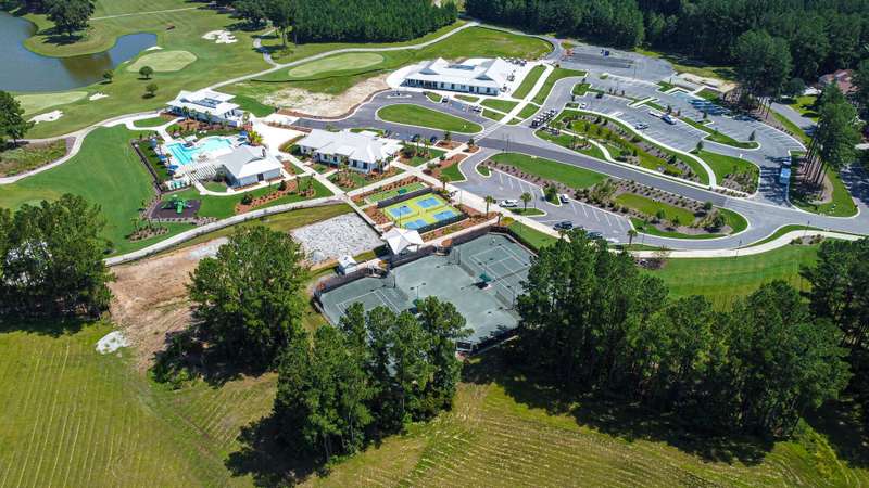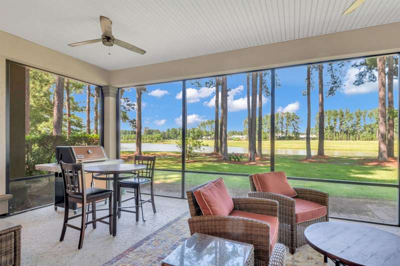 This Riverwalk floorplan shows like a model and is move in ready. 3 bedrooms/3.5 bathrooms loaded with extras: kitchen with granite counters, SS appliances, pull-outs, over/under counter lighting, tile backsplash, pendant lighting over bar seating, and built in oven/microwave. Primary suite has a large bedroom, bath with separate shower and extra large walk in closet. Great separation of bedrooms. Both guest rooms are ensuite. Wood flooring in all main living areas, carpet in bedrooms, plantation shutters throughout. Crown molding in all living areas plus primary bedroom. Oversized garage with utility sink allows for 2 cars + a golf cart. Pulldown stairs in garage with partially floored storage above. Premium lot with extra spacious back yard overlooking the lagoon. Riverton Pointe is a staff gated new-home community that offers an array of amenities including a Jack Nicklaus Design golf course, driving range, pro shop, restaurant, swimming pool, tennis, fitness center, future clubhouse, pickle ball, bocce ball, social events and much more!. Hampton Pointe within 20 minutes of Savannah, GA, Beaufort SC and the beaches of Hilton Head Island.