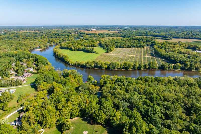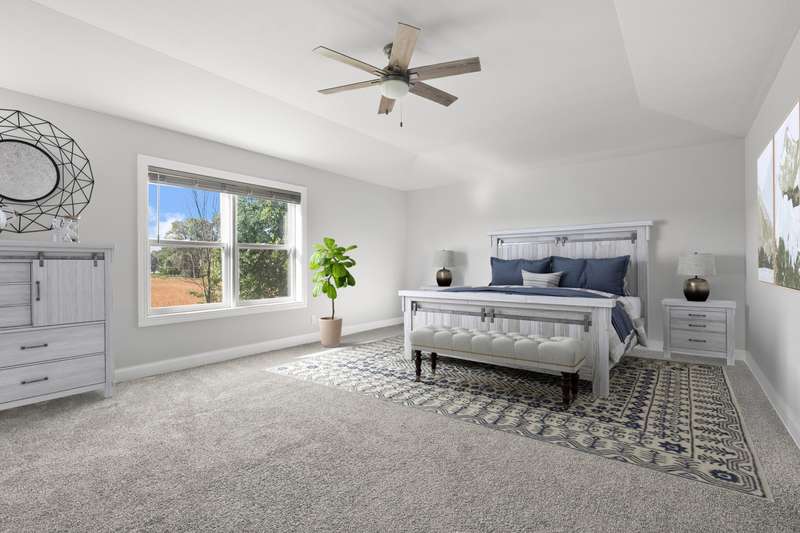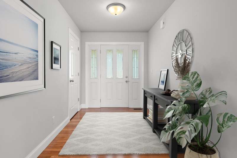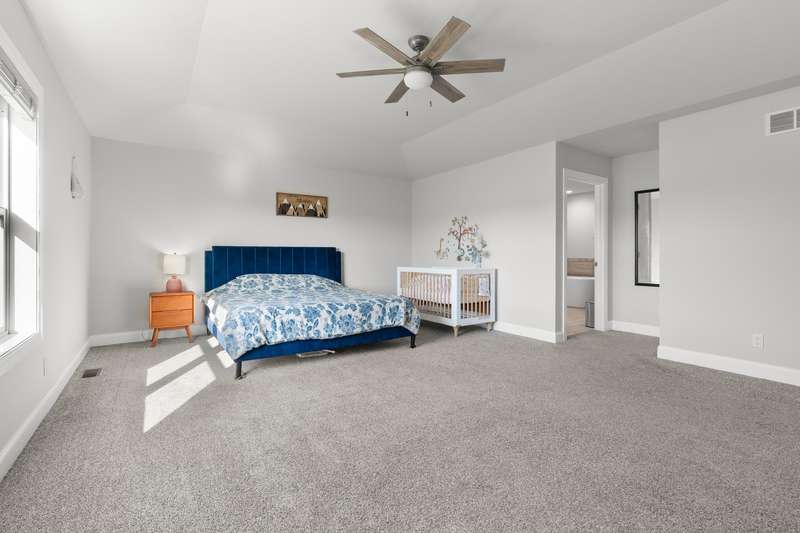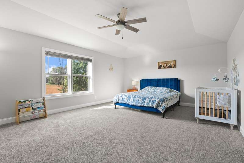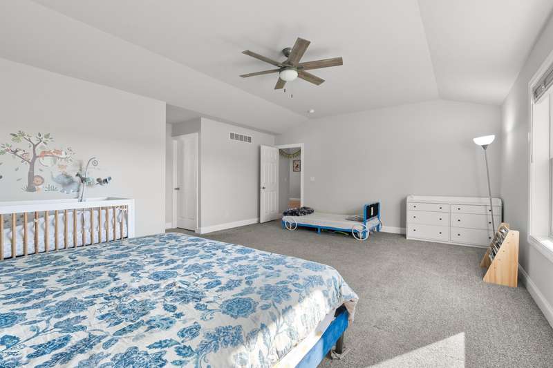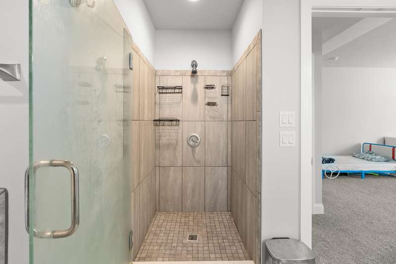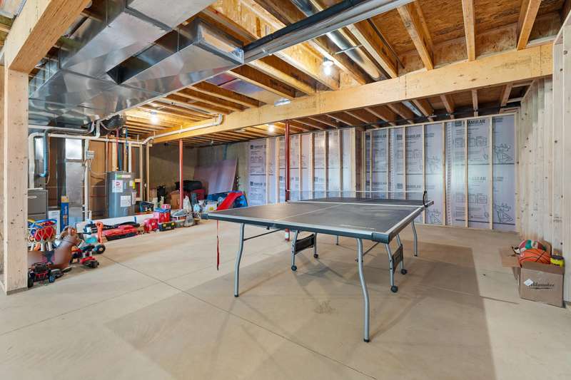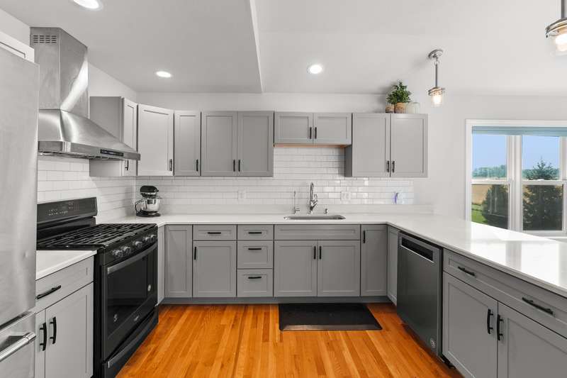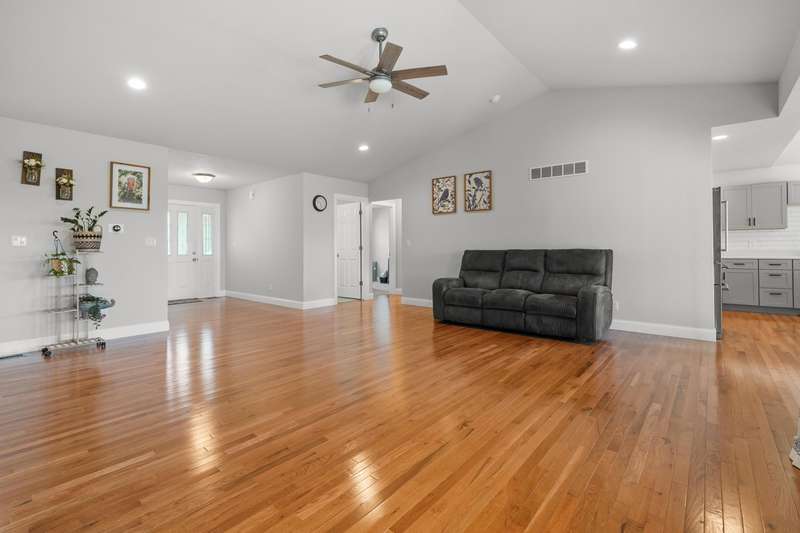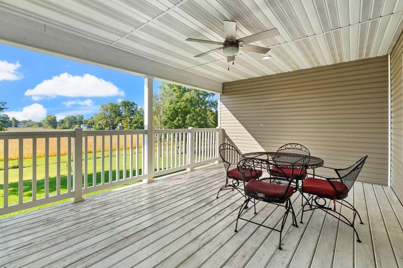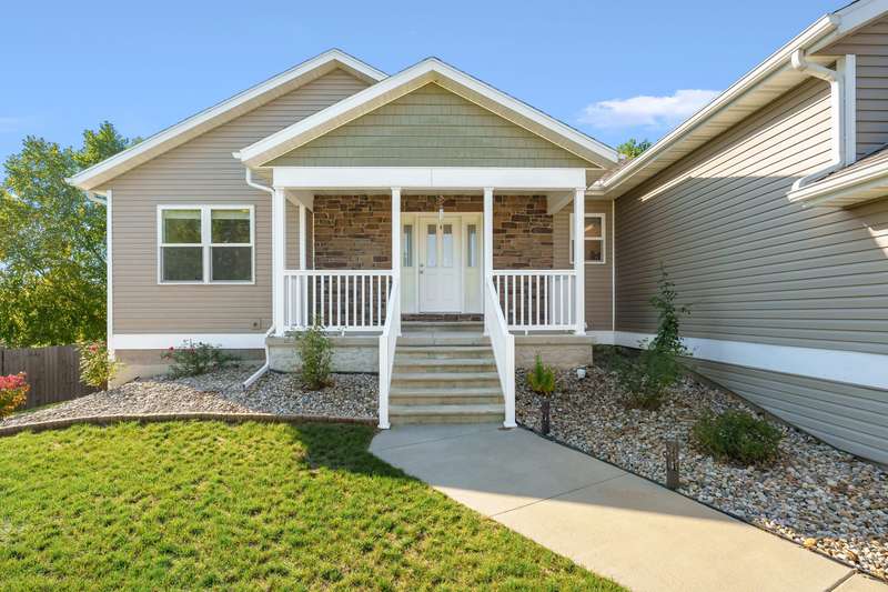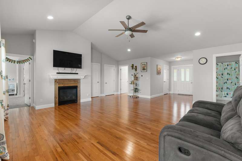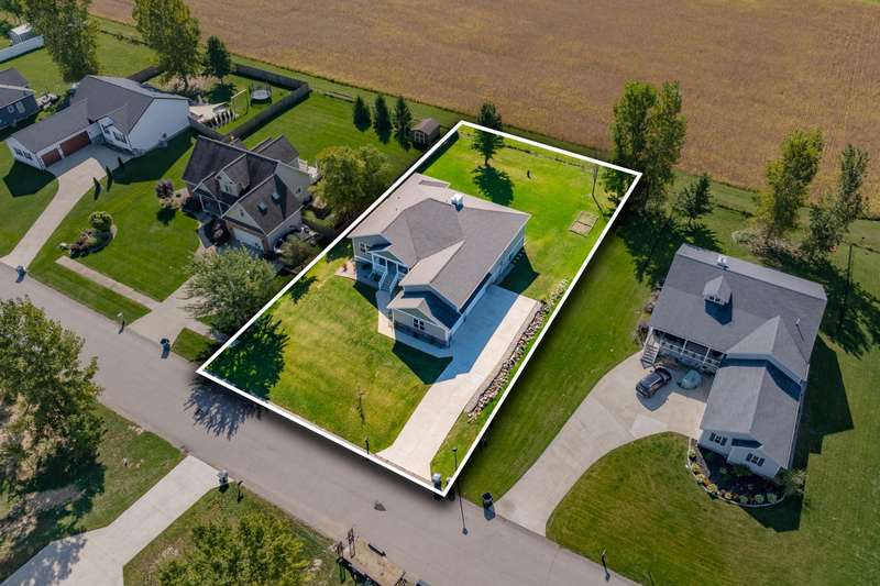 Stunning walkout ranch built in 2022, offers timeless design and modern finishes throughout. The spacious living room features a cathedral ceiling, gas-log fireplace, and access to an 18'x13' covered balcony overlooking the backyard. The gourmet kitchen boasts quartz countertops, stainless steel appliances, and a snack ledge, opening to a bright dining area filled with natural light. The 22'x18' primary suite is a private retreat with a tiled walk-in shower, soaking tub, and dual vanities. Hardwood floors enhance the main living spaces, while ceramic tile elevates the baths and laundry, and plush carpet provides comfort in the bedrooms. A side-loading 3-car garage offers room for vehicles, boats, toys, or storage. The walkout lower level features a finished full bath and is framed and ready for completion - offering daylight windows, a slider to a stamped-concrete patio, and endless potential for additional living or entertaining space. Only 1 mile to St Joseph River Public access.